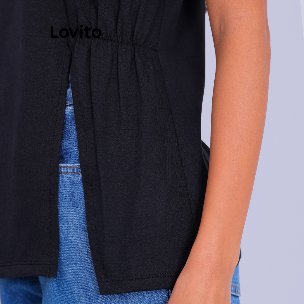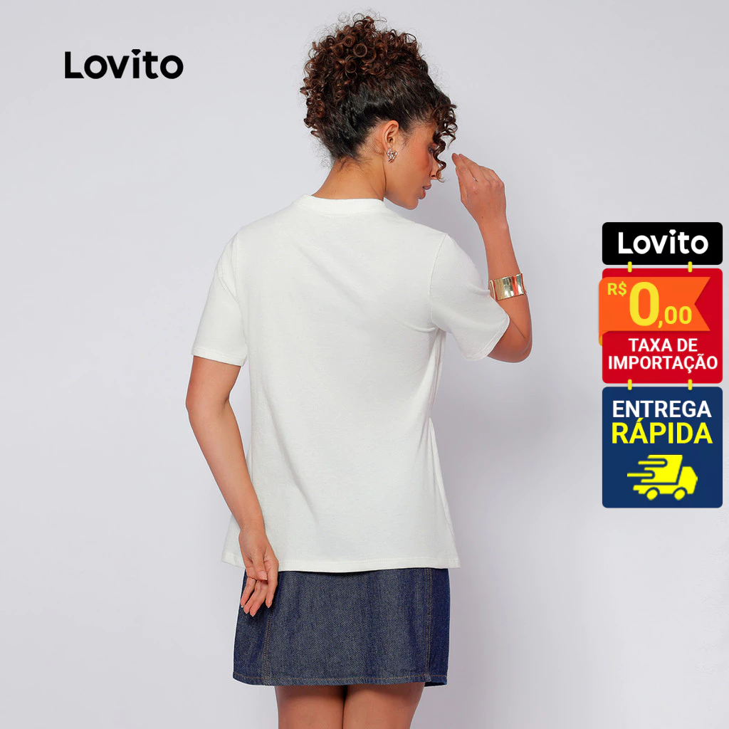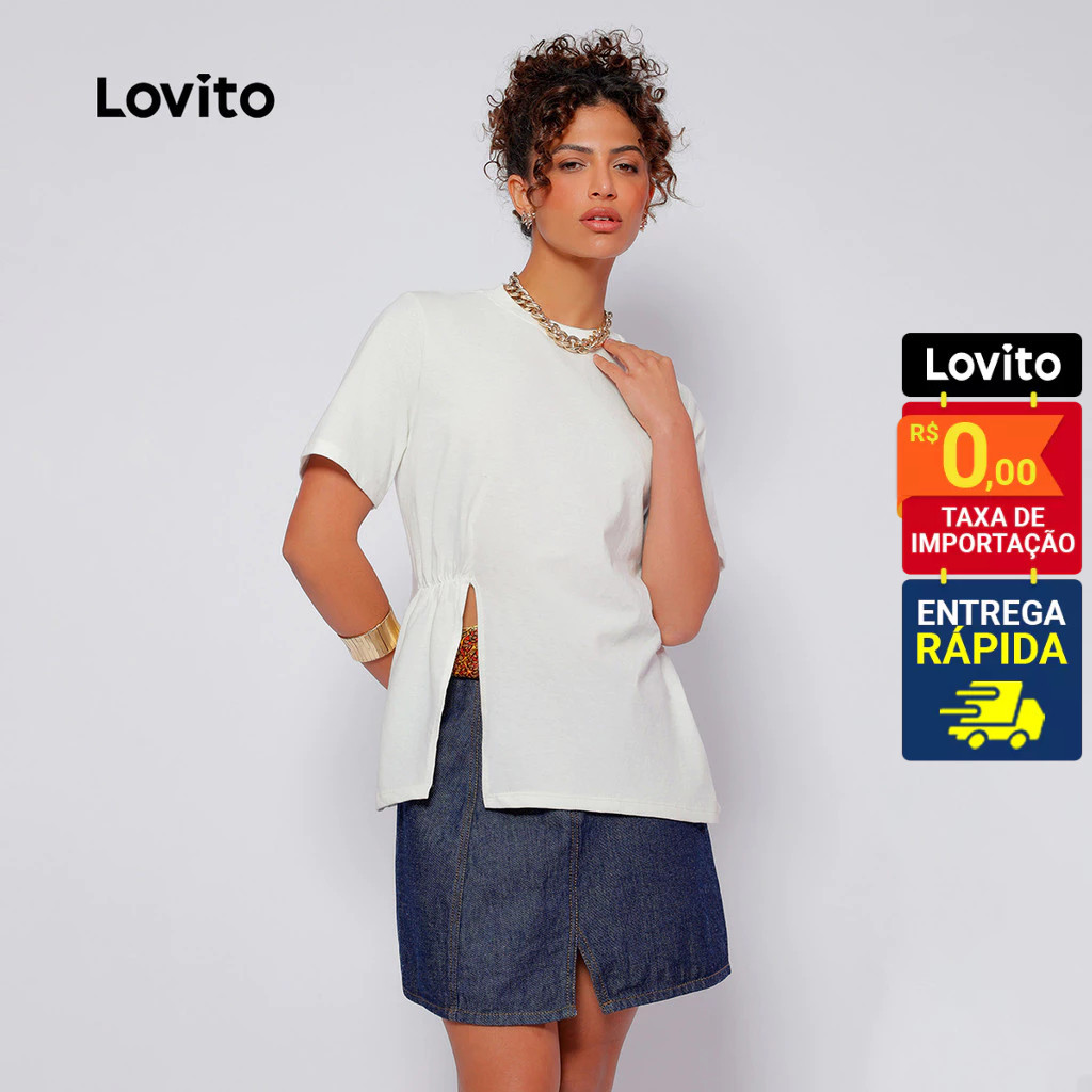 Lovito Camiseta Basica Algodão Gola Careca Manga Curta Moda Mini Fenda Casual Lisa LB517BRL547