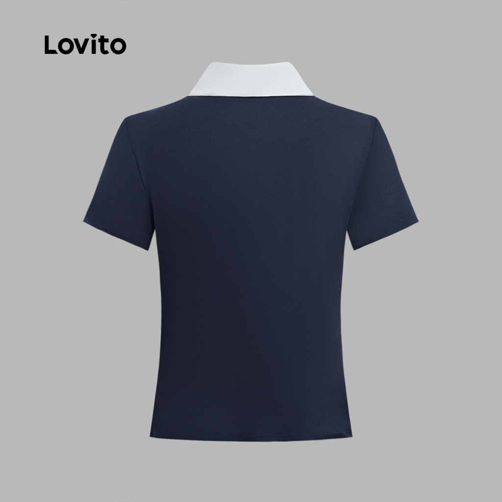 Lovito Camisa Casual de Manga Curta com Estampa Contraste para Lazer Primavera/Verão L156AD217