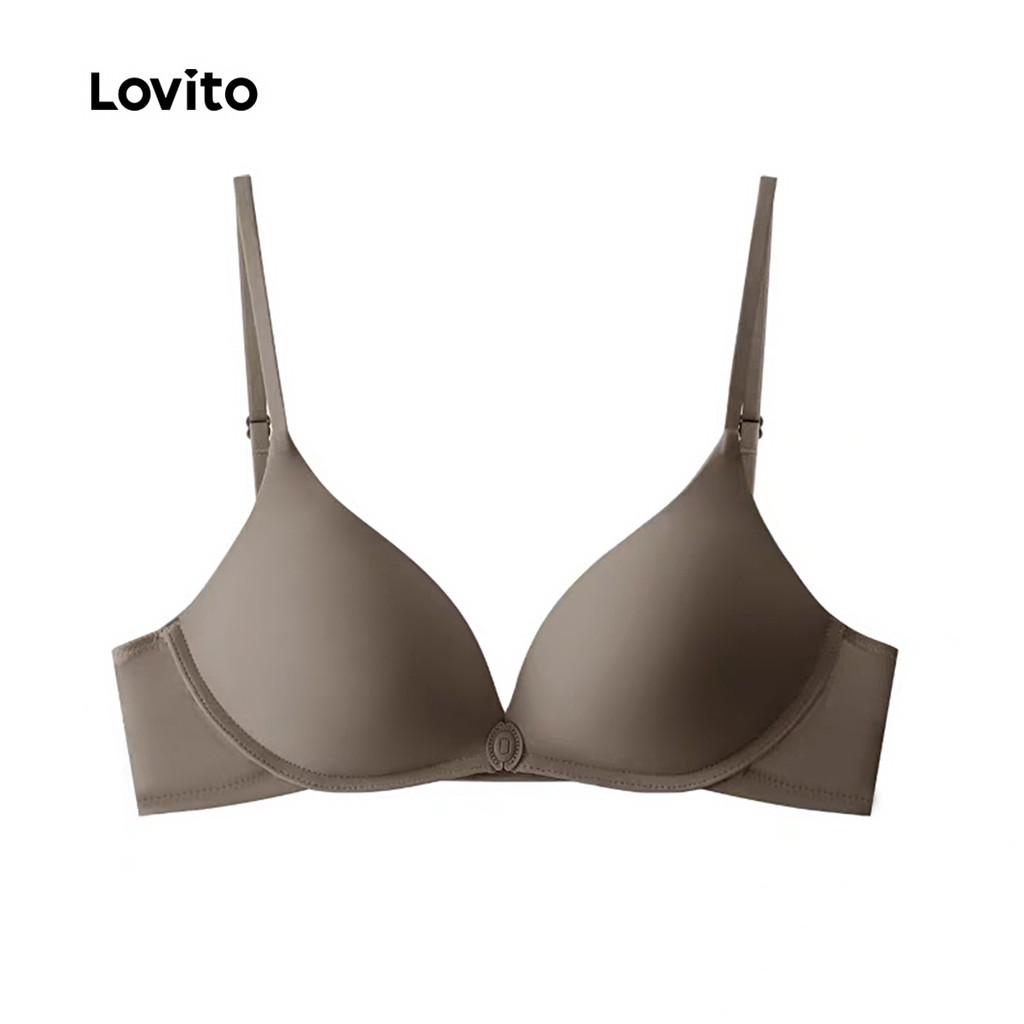 Lovito Casual Bralette Amigável À Pele Sem Fio Sutiã Push Up Marrom para Mulheres LNE126155