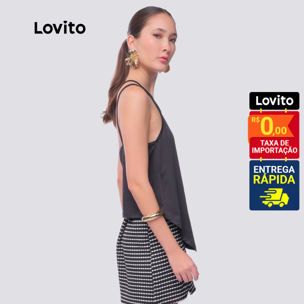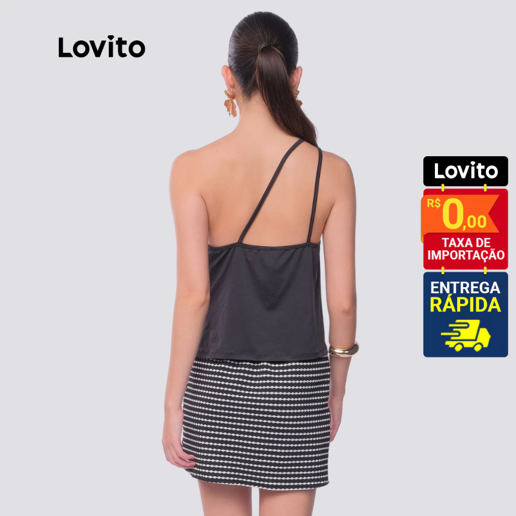 Lovito x Glenda Top Preto Um Ombro só Elegante Lisa Assimétrica Feminina LB792BRL822