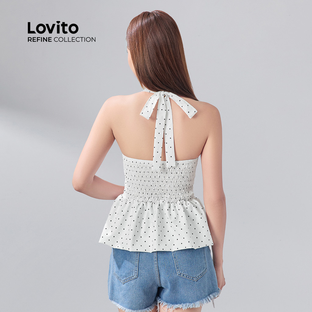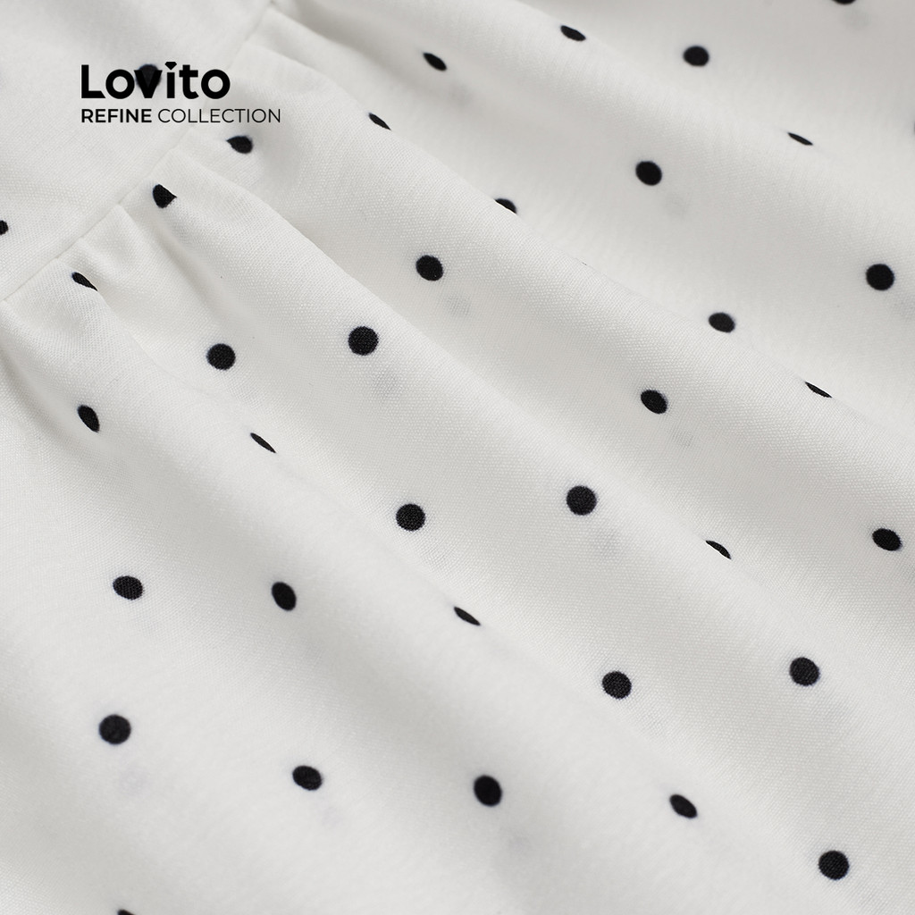 (Lovito Refine) Top Casual Com Babados Na Bainha Primavera/Verão Preto E Branco Para Mulheres LR12A232