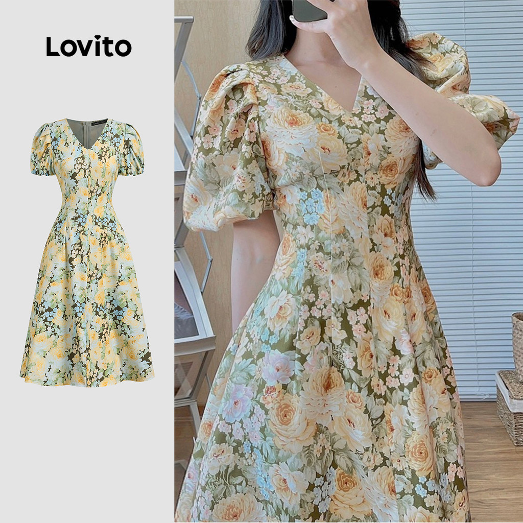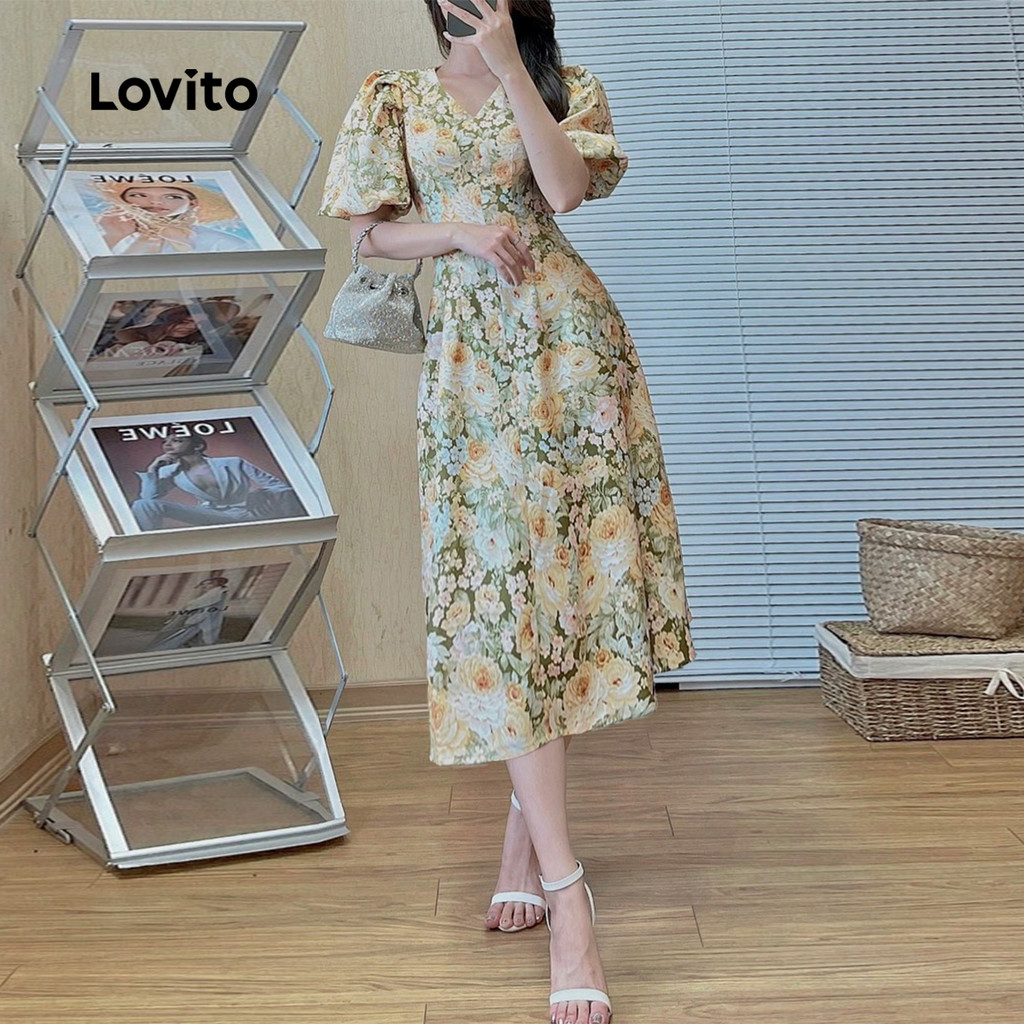 Lovito Vestido Boho com Babados para Primavera/verão para mulheres L149ED1100
