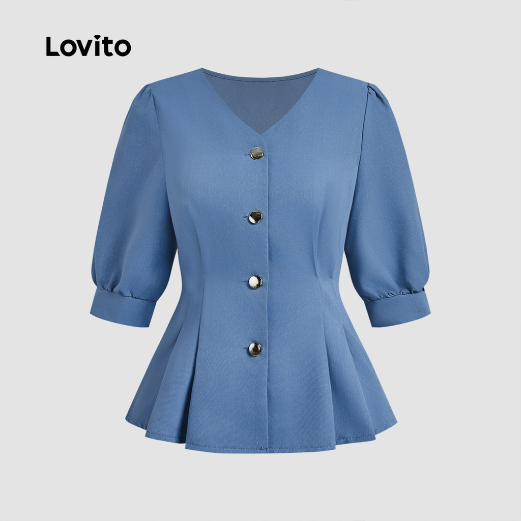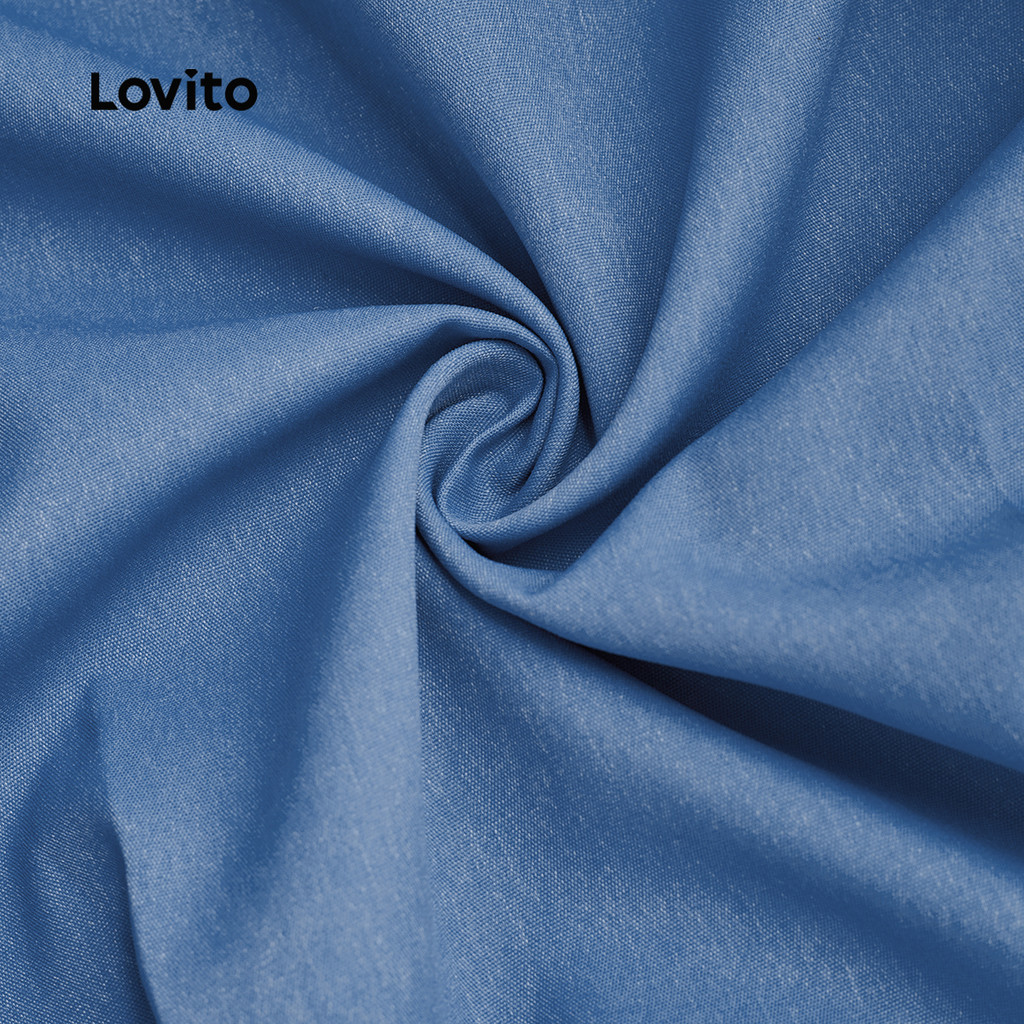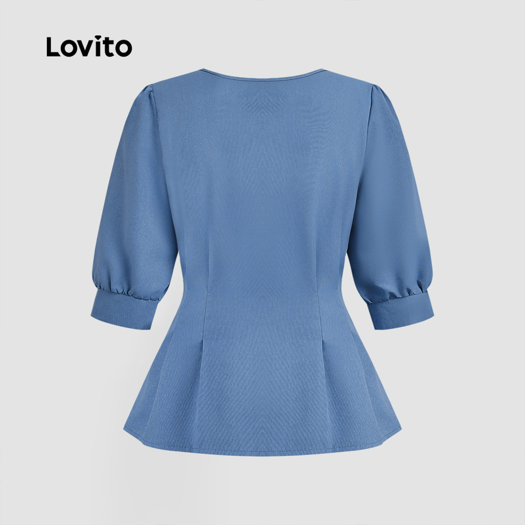 (NEW) Lovito Blusa Casual de Primavera/verão Blusa Plissada Azul para mulheres L155AD096