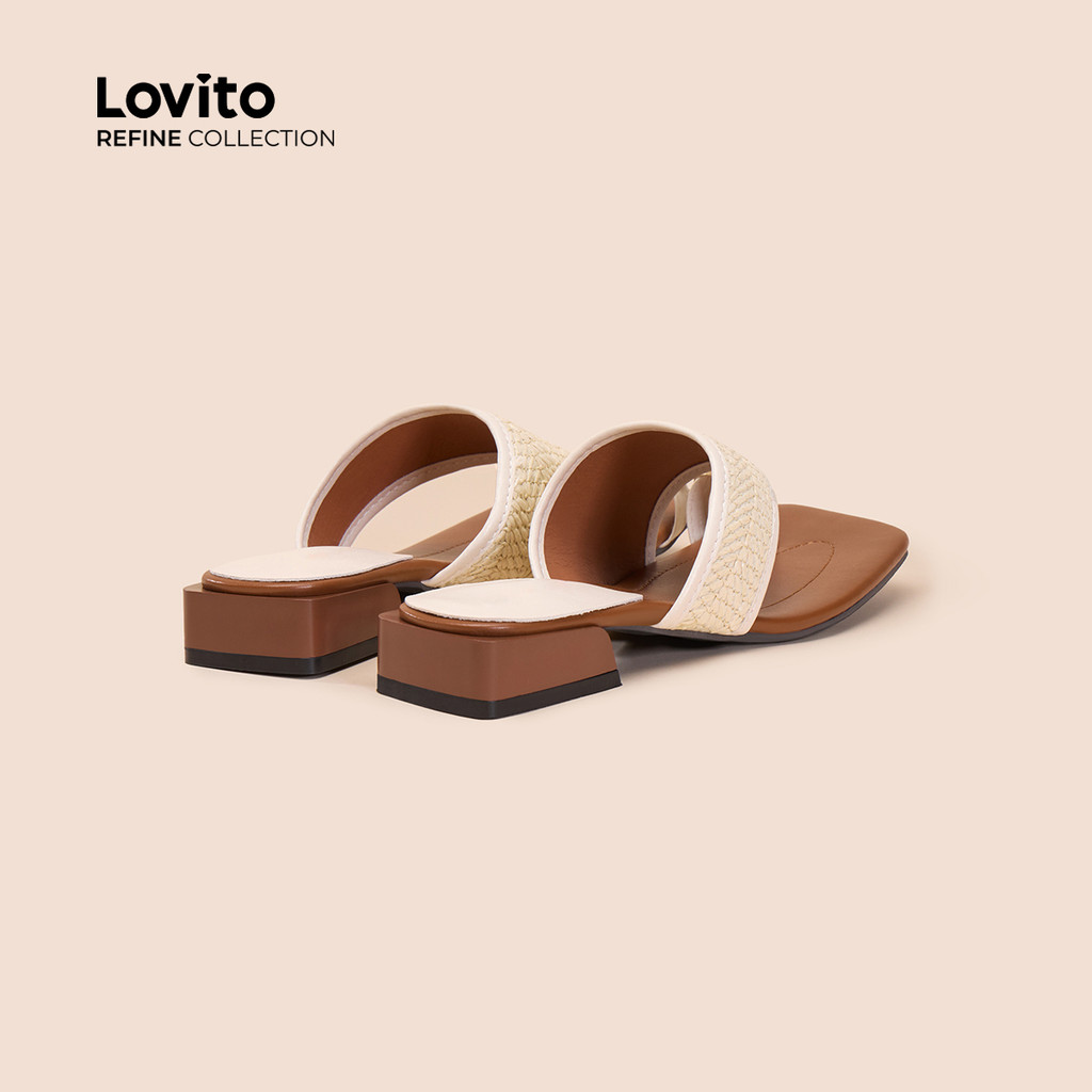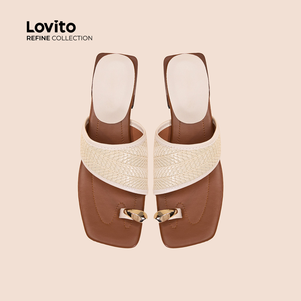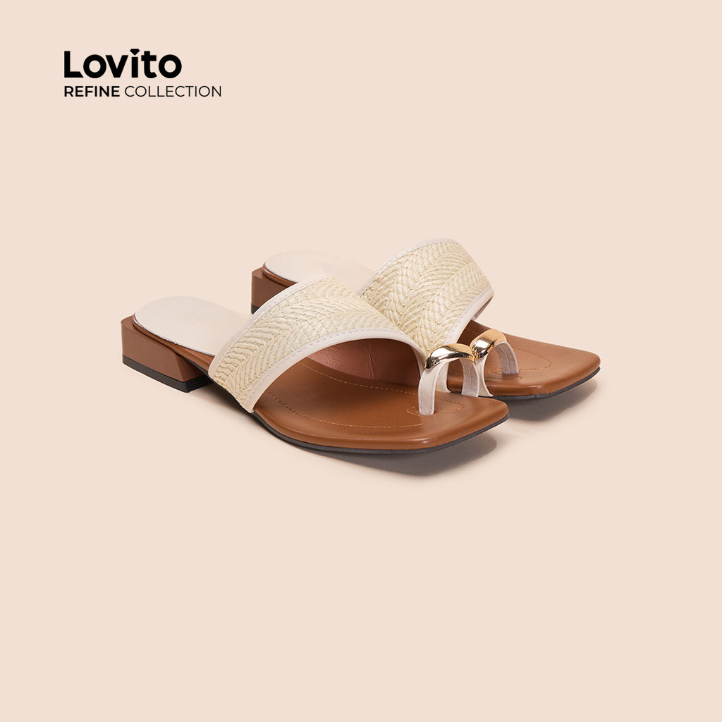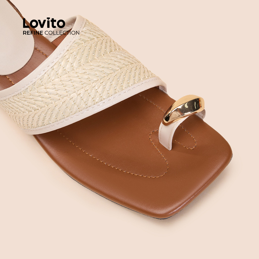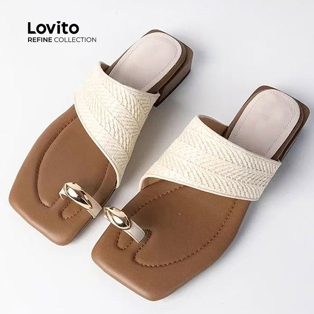 (Lovito Refine) Sandálias Vintage Estampadas Metal Retro - Chinelos de Moda para Todas As Estações Bege LR13E447
