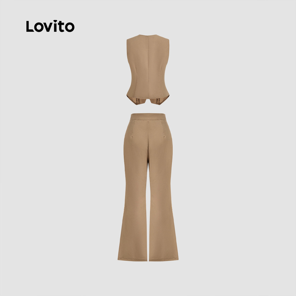Lovito Conjuntos De Calças Elegantes Para Uso Diário Primavera/verão Calças Cáqui Claras Conjuntos Mulheres L138ED053