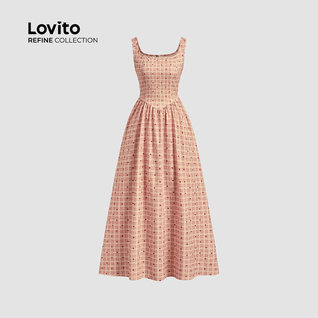 (Lovito Refine) Vestido Casual de Pregas e Drapejado para Primavera/verão Cor de Rosa para Mulheres LR18E032