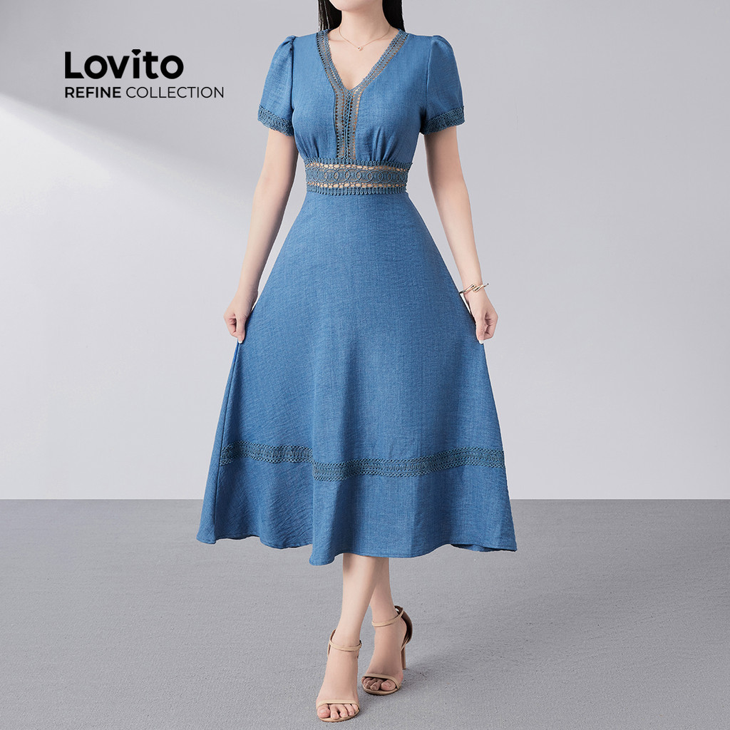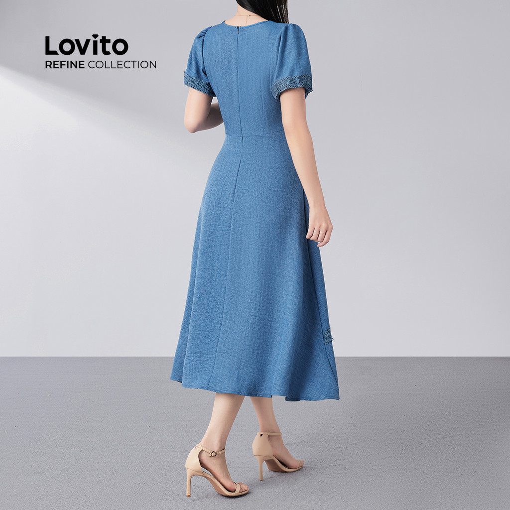 (Lovito Refine) Vestido Elegante com Jacquard Primavera/verão Azul para Mulheres LR21E027