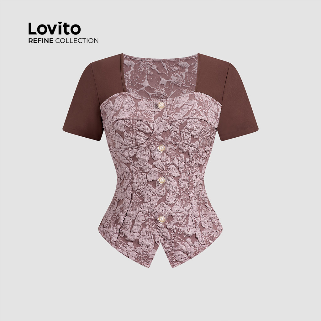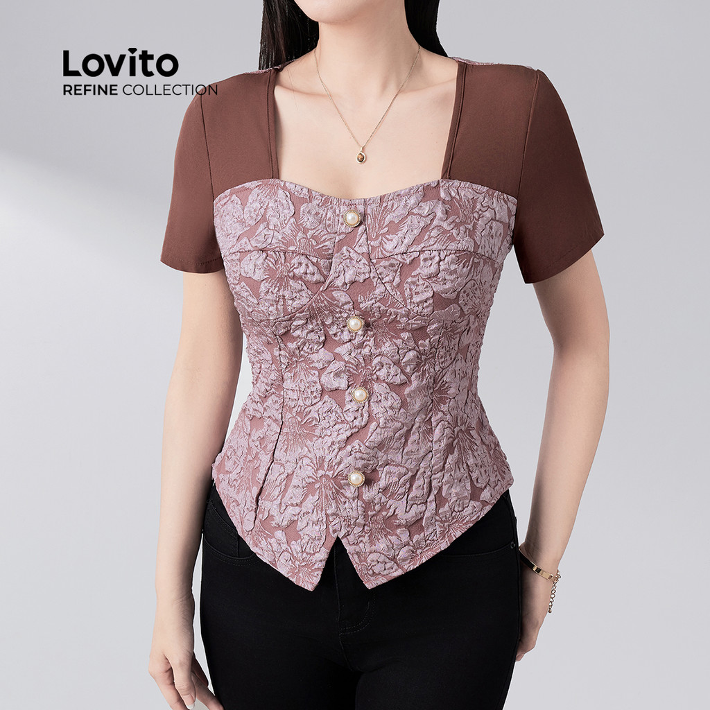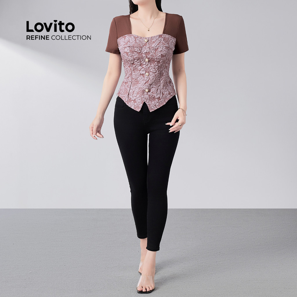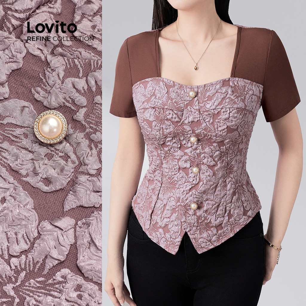 (Lovito Refine) Blusa Elegante Paetês Primavera/verão para Mulheres LR21E030