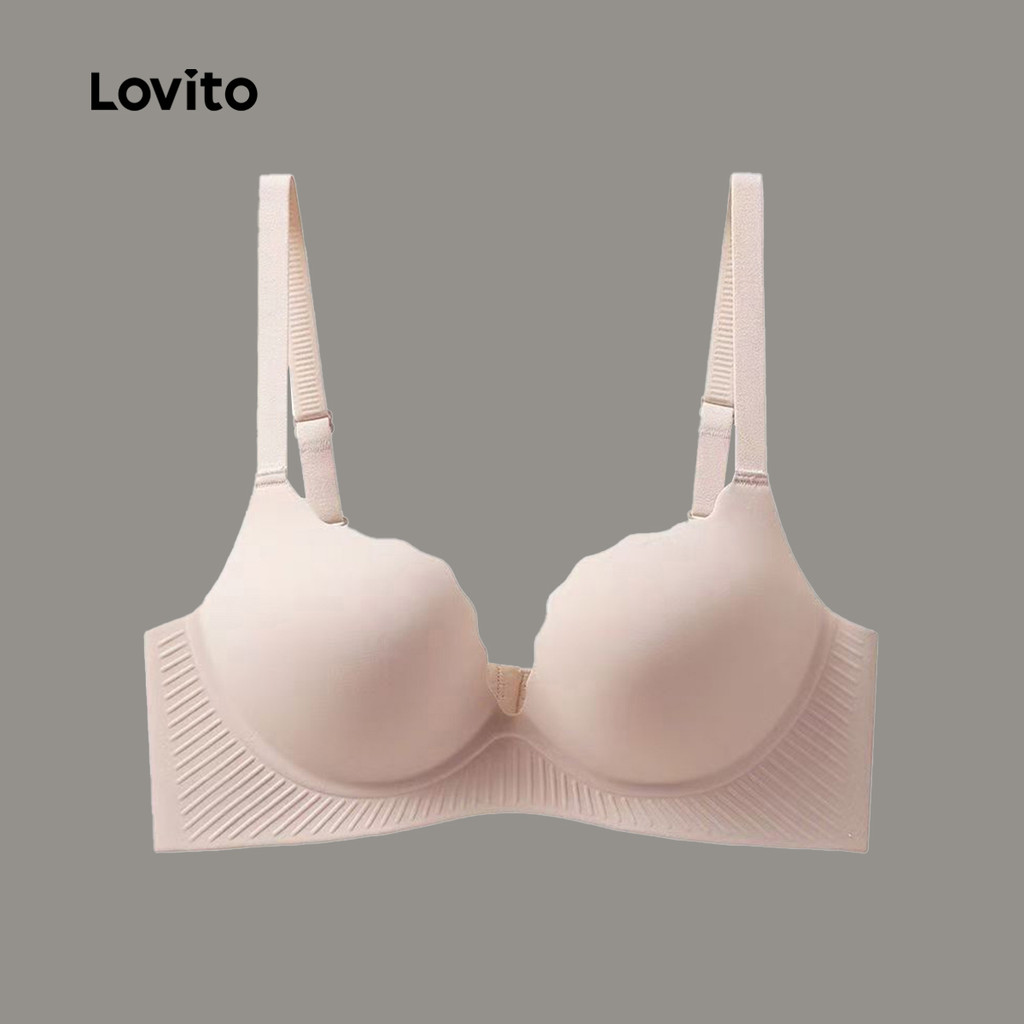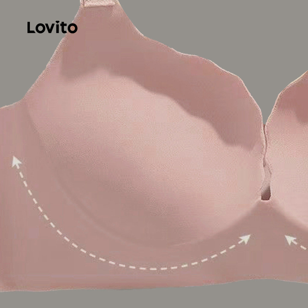 (NEW) Lovito Soutien-gorge Sensual de Algodão Macio Sem Costura com Bojo Push Up para Mulheres Rosa Sem fio LNE117257