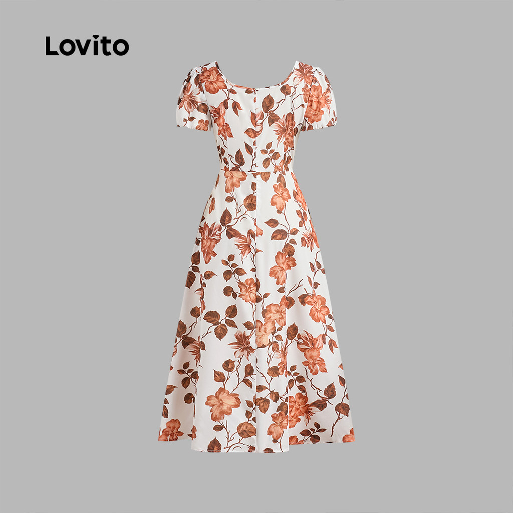 (NEW) Lovito Vestido Elegante com Flores Primavera/verão Vestido Multicolorido para Mulheres LBL29041