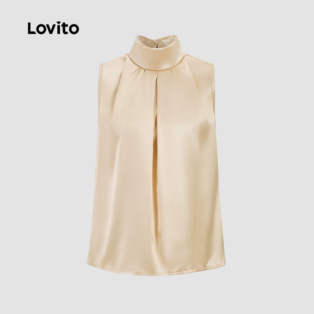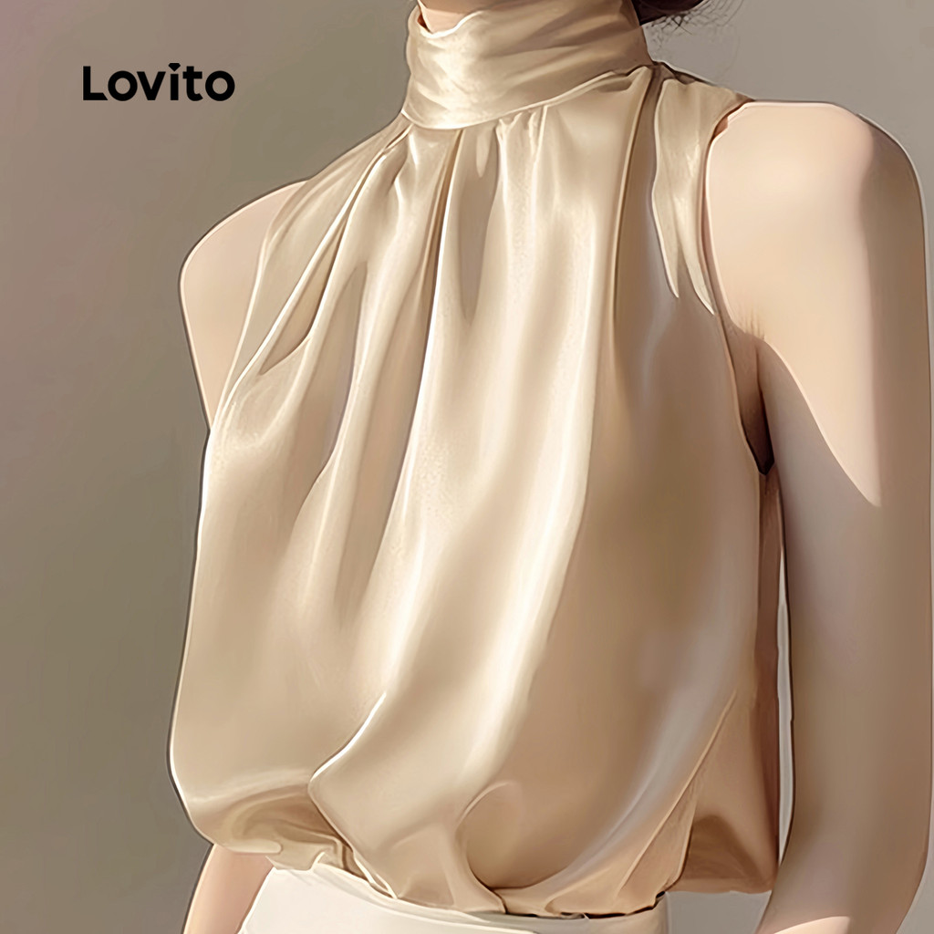 (Trendy) Lovito Regata elegante e lisa plissada para mulheres L132ED025