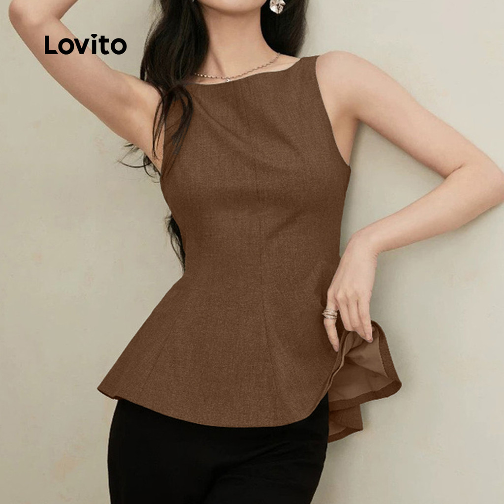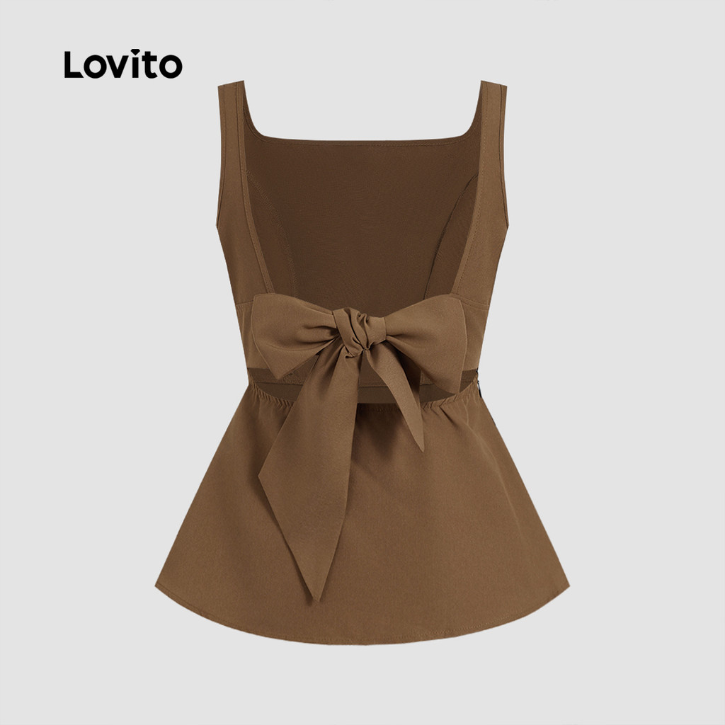 (New) Lovito Blusa Elegante com Laço Nas Costas Sem Costas Primavera/verão Marrom para Mulheres L142LD443
