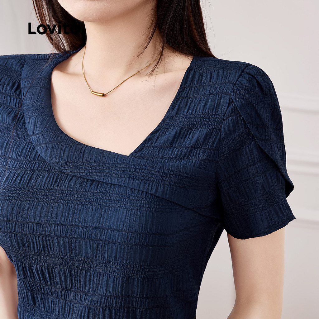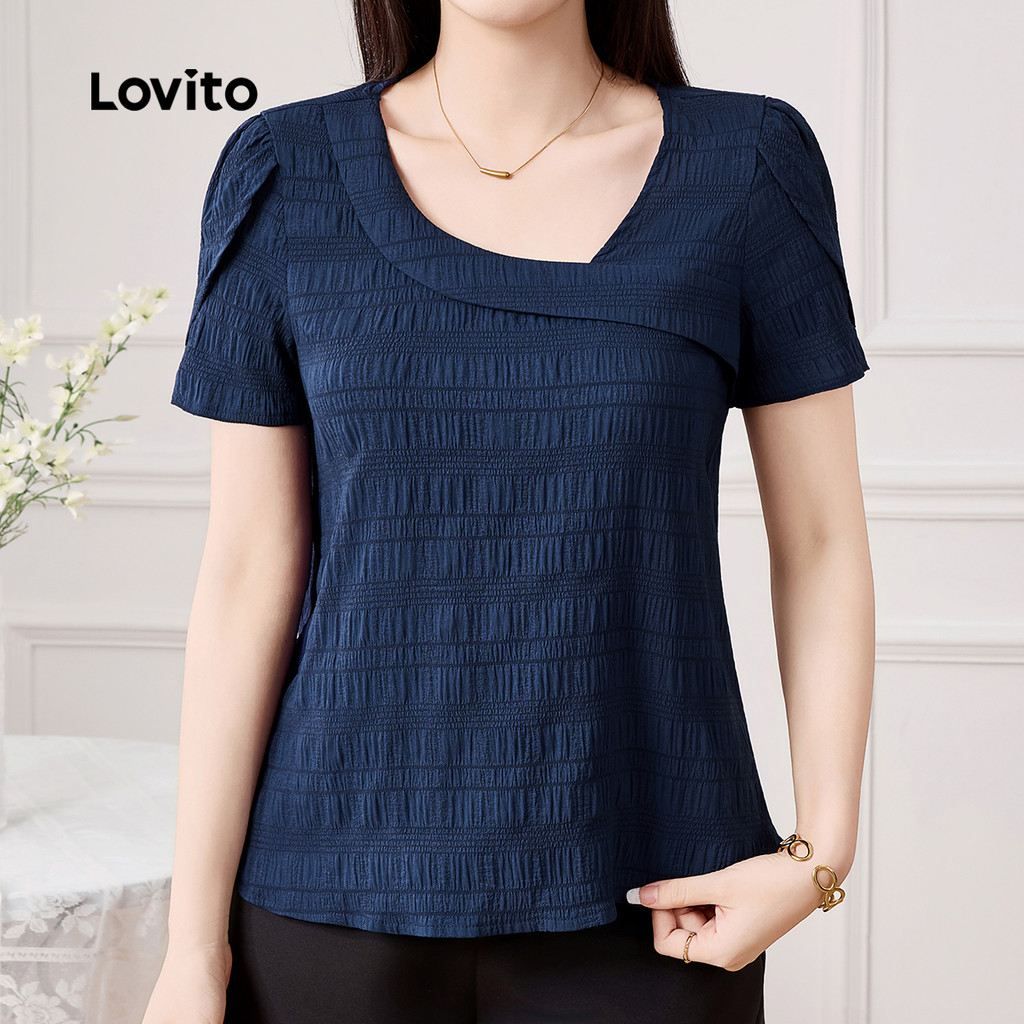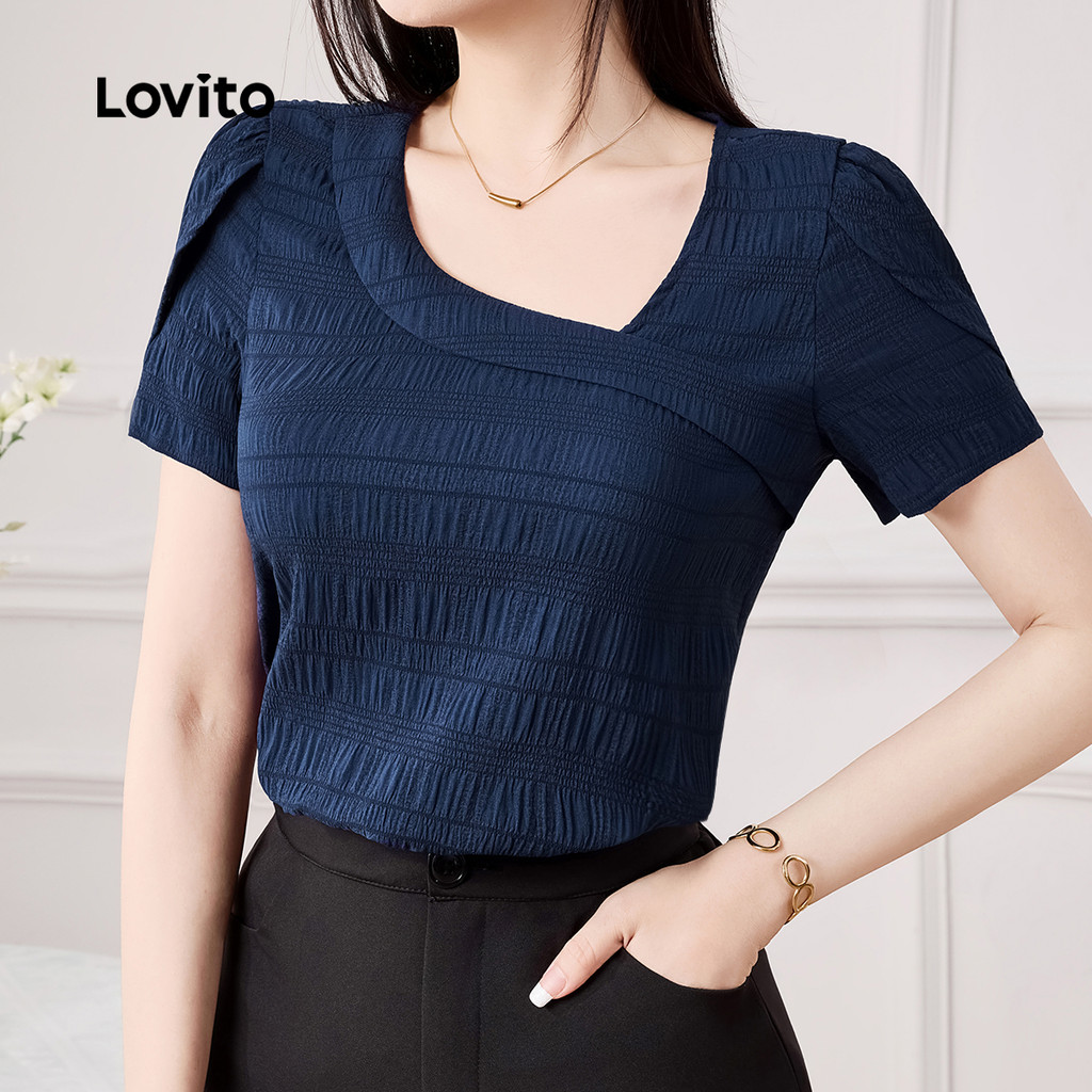 (New) Lovito Blusa Casual de Lazer Primavera/verão Blusa Azul Marinho para Mulheres L150AD973