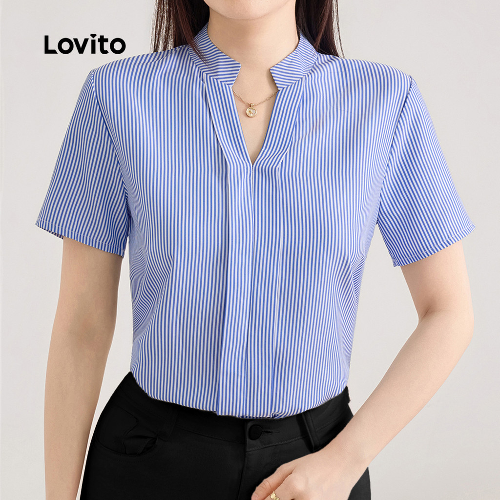 (New) Lovito Blusa Casual de Primavera/verão Azul para mulheres L243AD605