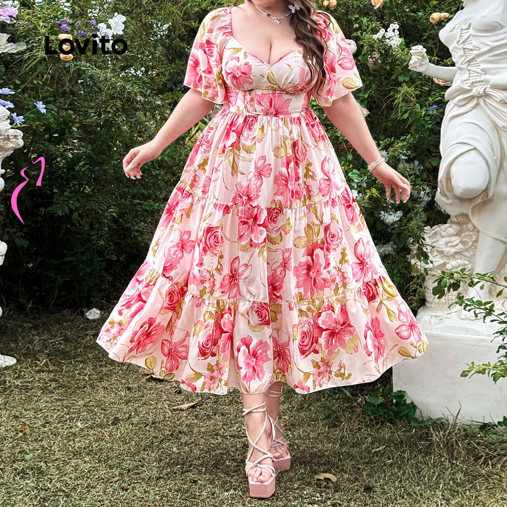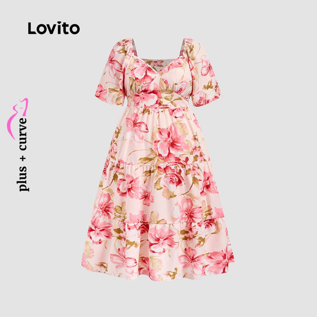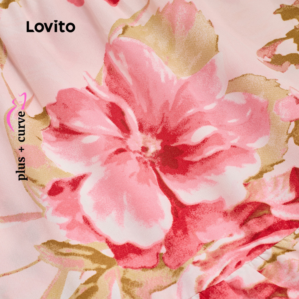 (New) Lovito Vestido Boho de Tecido com Costura Estilo Resort em Camadas Primavera/verão Vestido rosa LBL27035