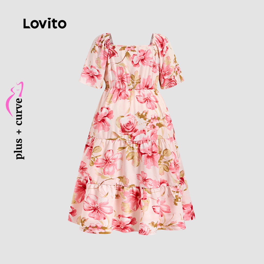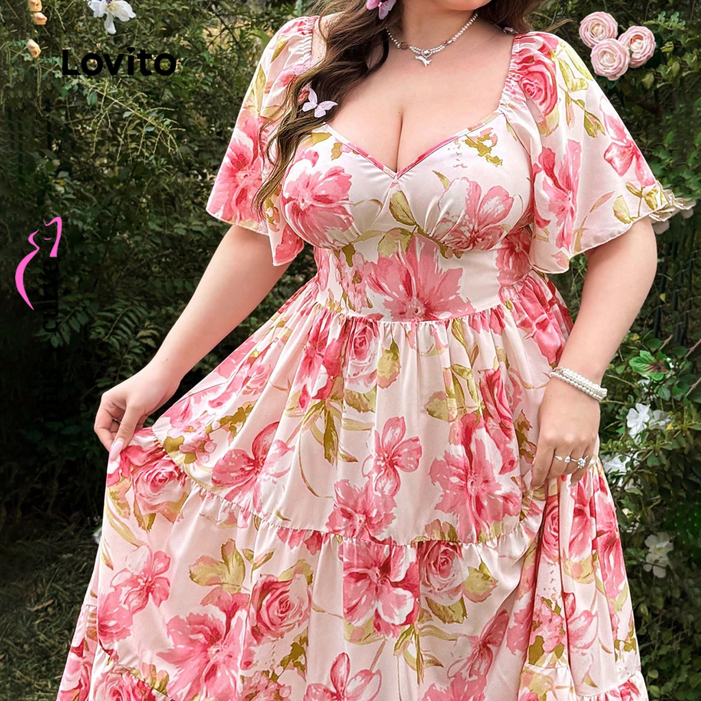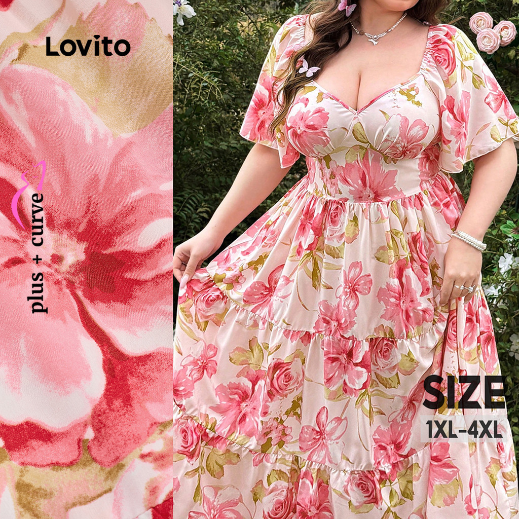(New) Lovito Vestido Boho de Tecido com Costura Estilo Resort em Camadas Primavera/verão Vestido rosa LBL27035
