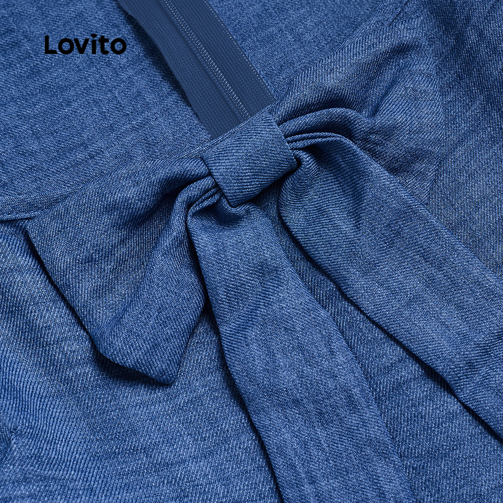 Lovito Vestido Elegante Azul Com Pregas E Laço Para Primavera/verão L149ED176
