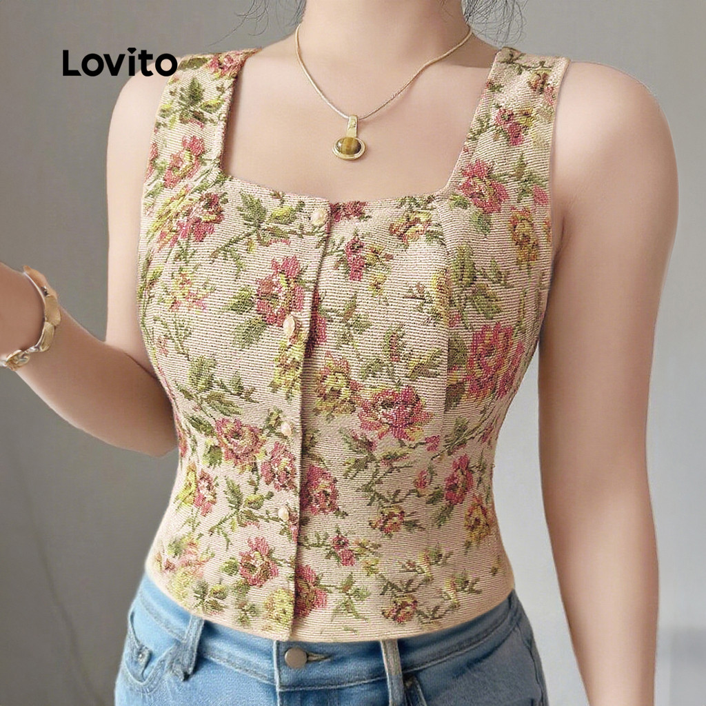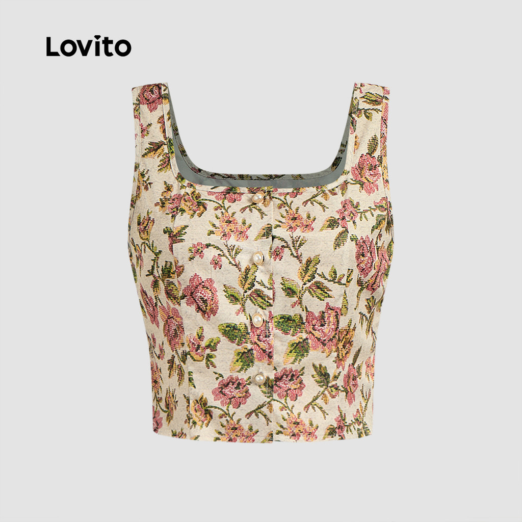 (New) Lovito Camisa Casual de Botão Superior para Primavera/verão para mulheres L150ED200