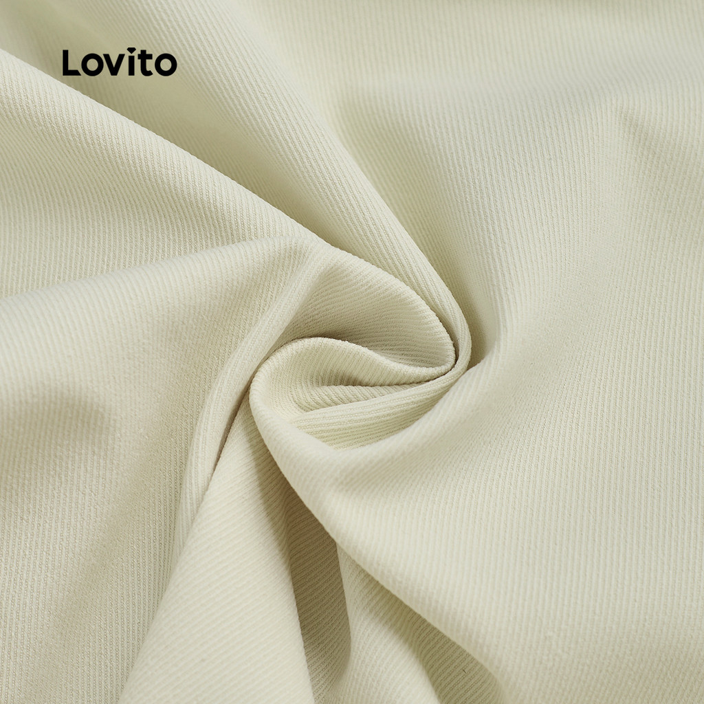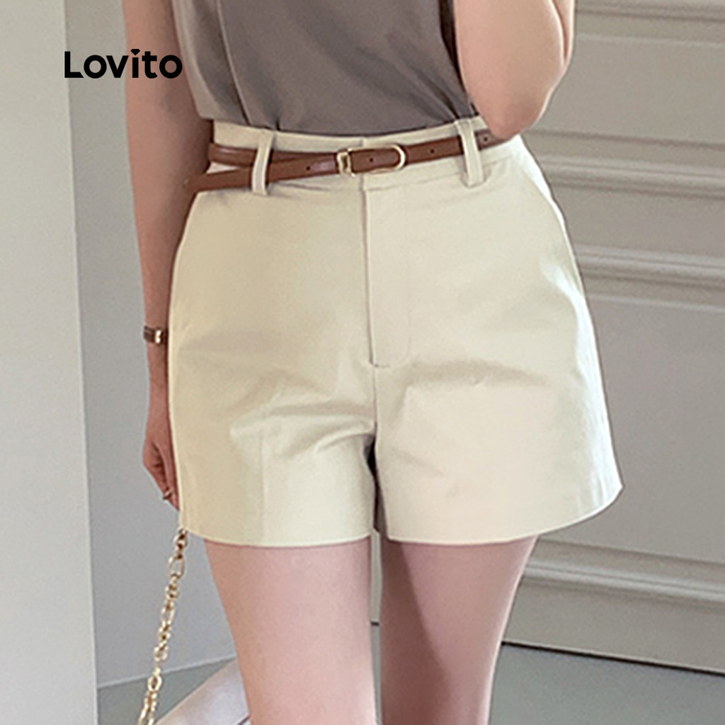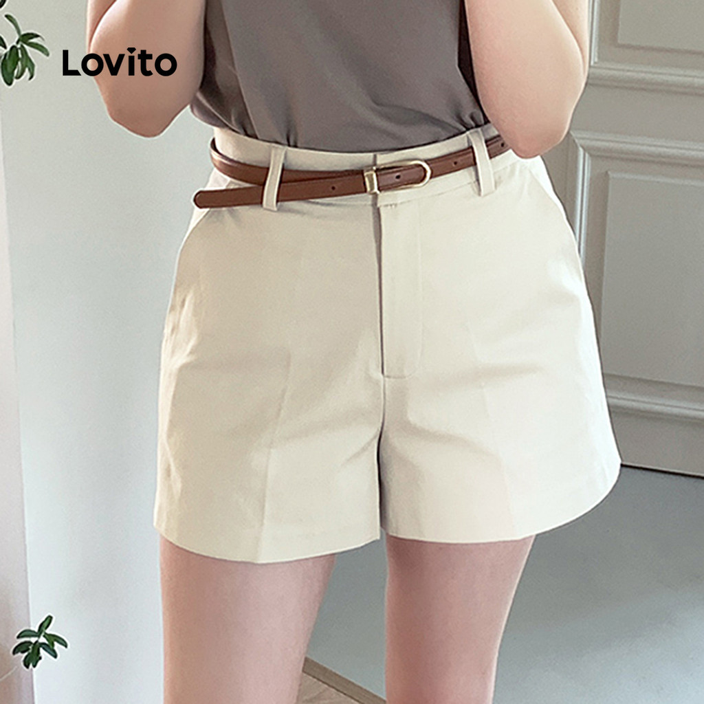 (New) Lovito Shorts Casuais com Botão Lazer Deslocamento Primavera/verão Shorts Brancos para mulheres L144AD198