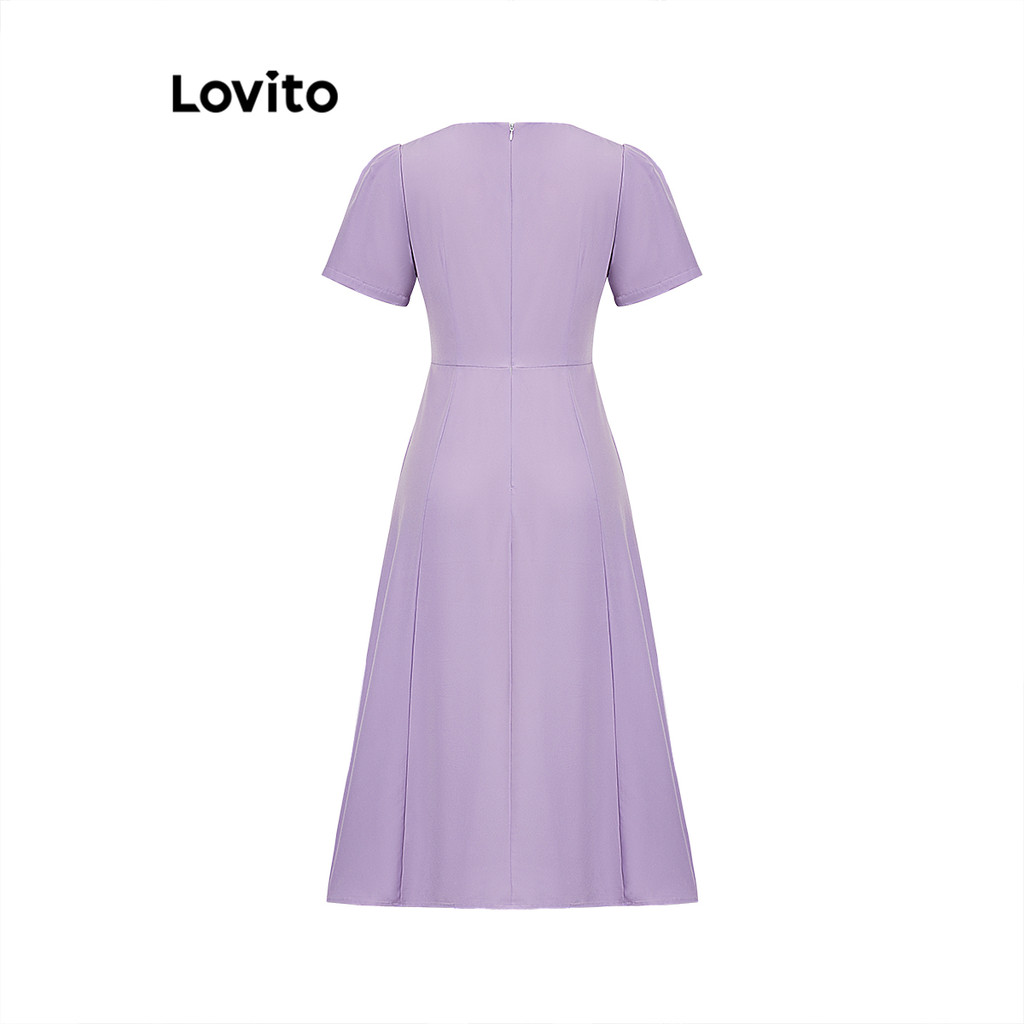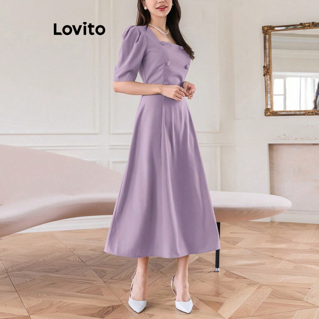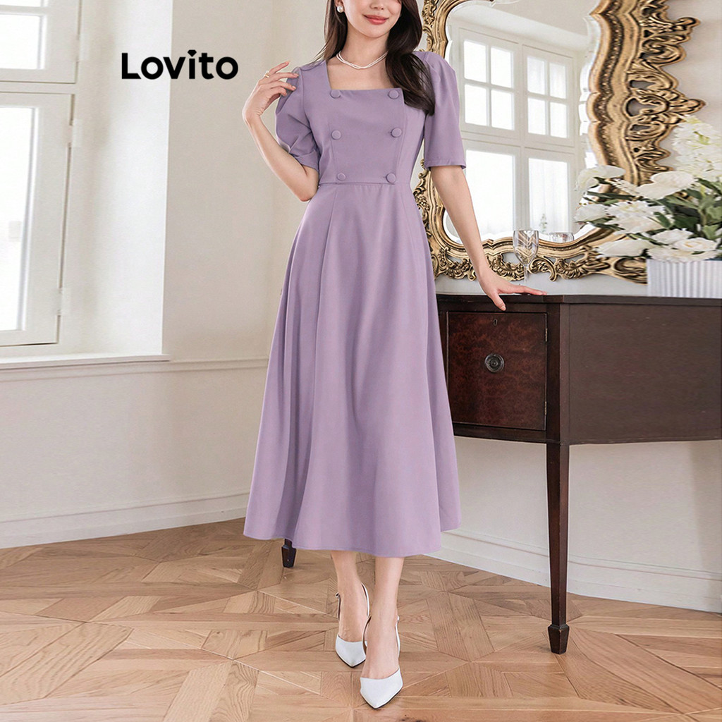 (Trendy) Lovito Vestido Elegante Vestido Liso Com Botões Para Mulheres L100MD425