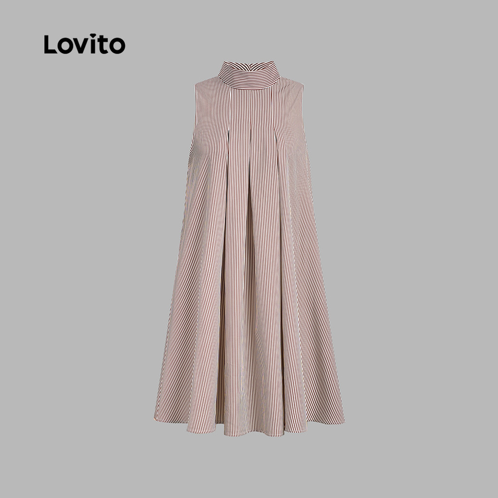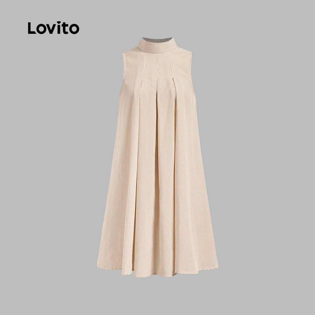 Lovito Vestido Casual com Pregas para Primavera/verão Leve Cáqui para Mulheres L150ED615