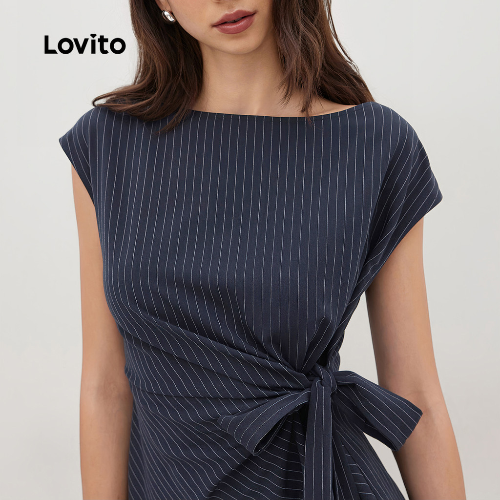 Lovito Blusa Elegante Clássica E Versátil Com Amarração Nas Costas Azul Marinho Primavera/verão Para Mulheres L150AD847