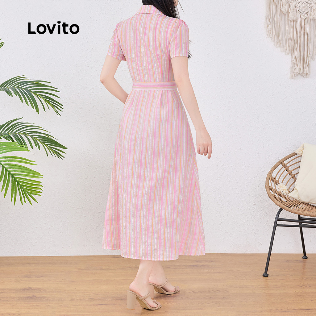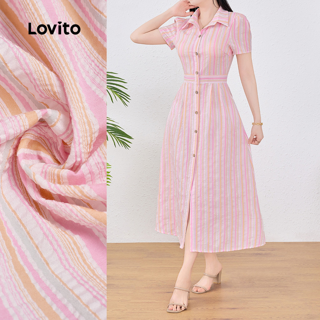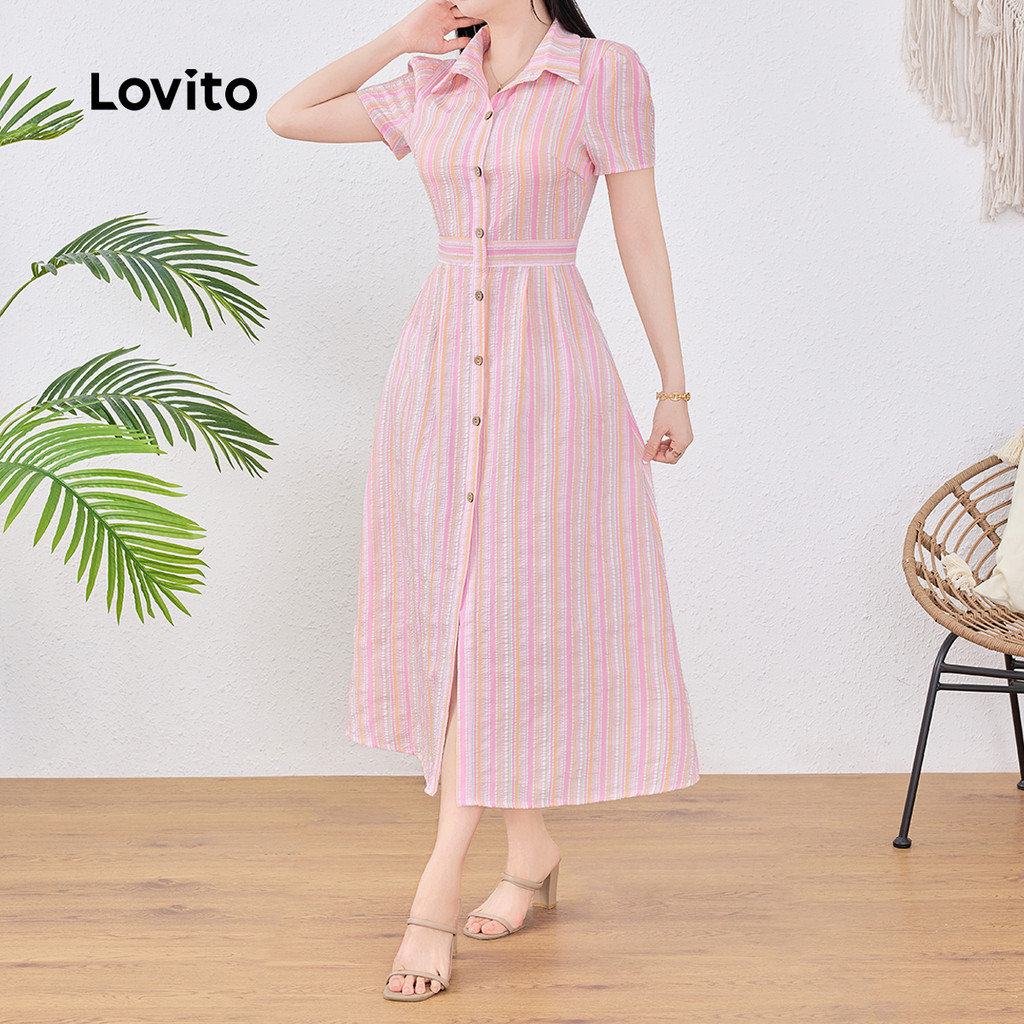 (New) Lovito Vestido Casual de Botão para Spring/summer para mulheres L143EDD534