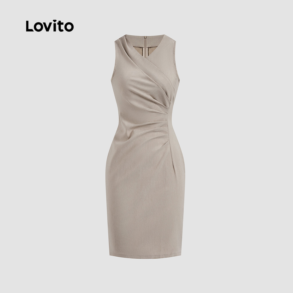 Lovito Vestido feminino elegante plissado com design minimalista L123ED629