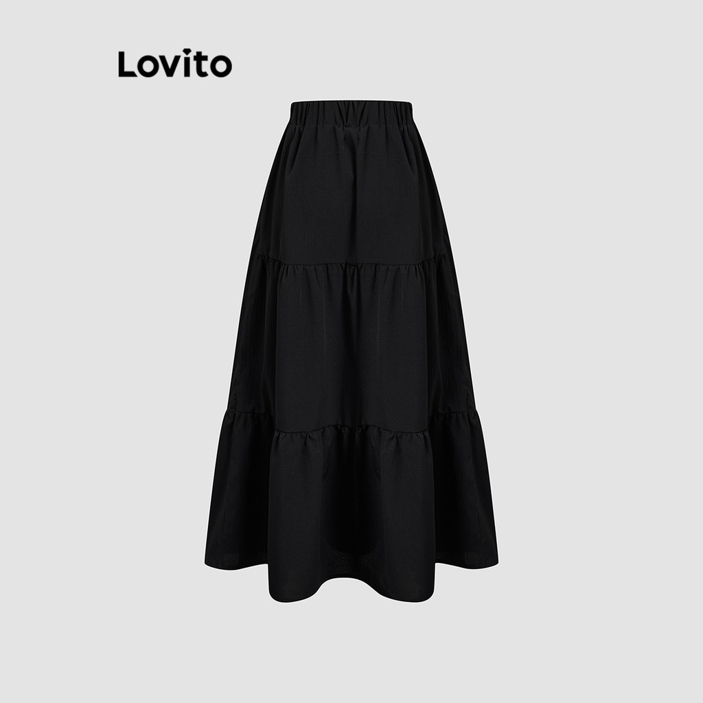 Saia Feminina Casual Lovito em Cor Lisa - Estrutura Ideal para Verão e Primavera L118ED149