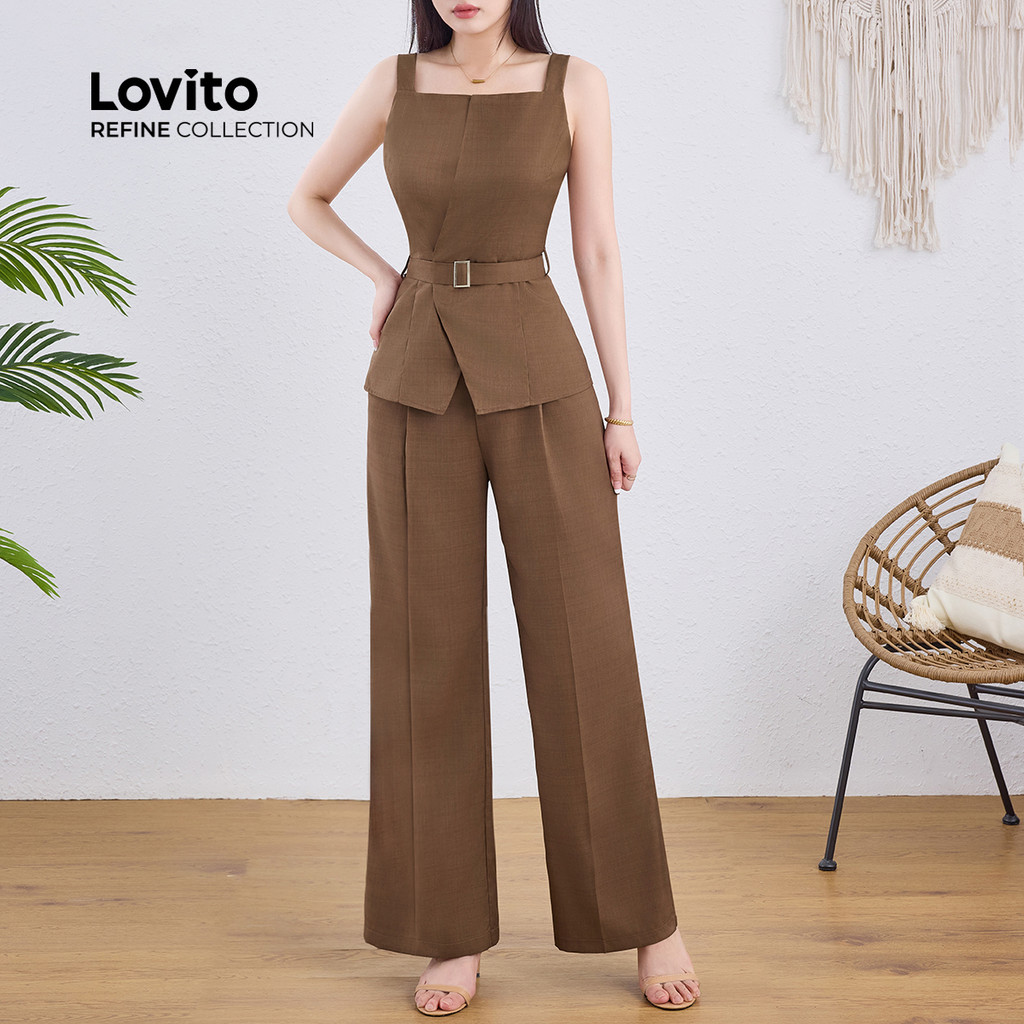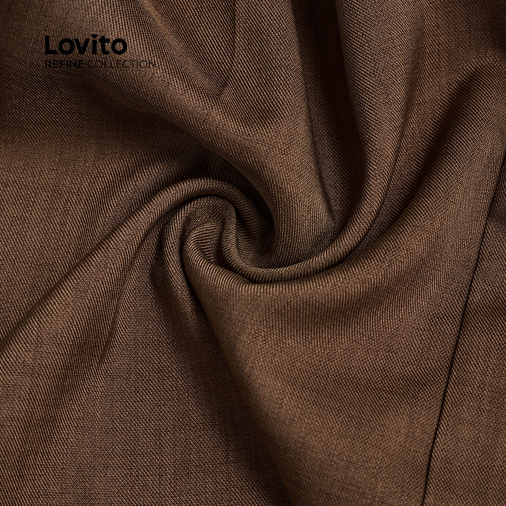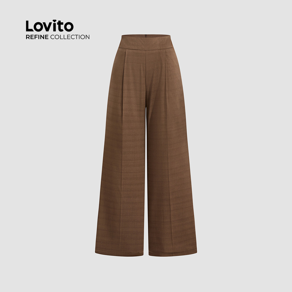 (Lovito Refine) Conjuntos de Calças Casuais com Pregas Zíper Primavera/verão Calças de café LR12E044