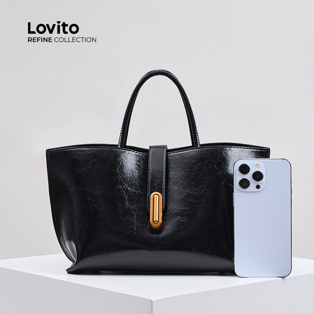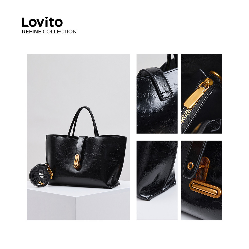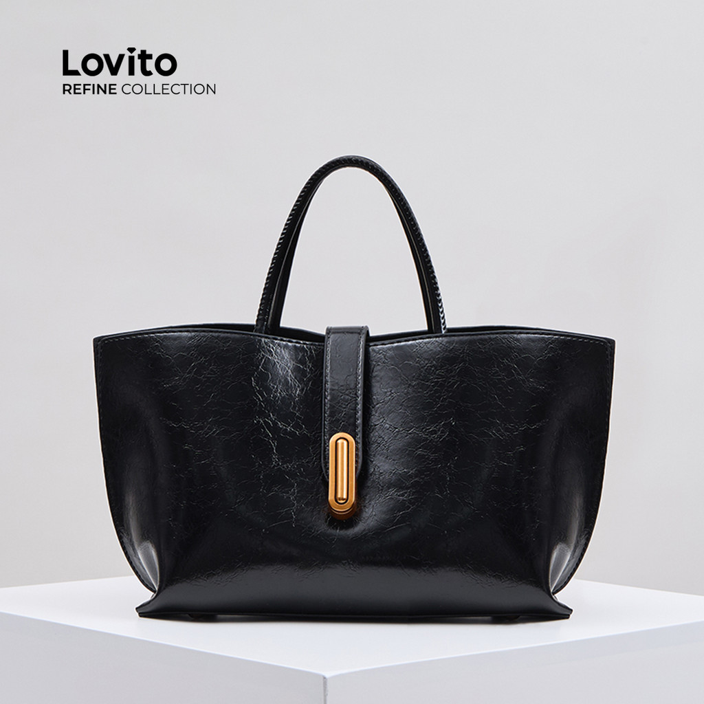 (Trendy) (Lovito Refine) Balde liso Casual com textura simples Bolsa de ombro para mulheres LFAR6113