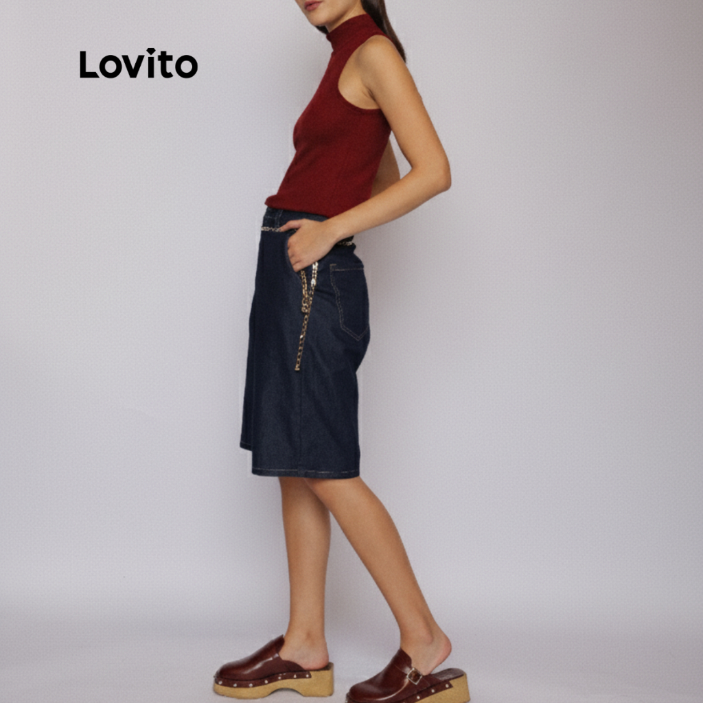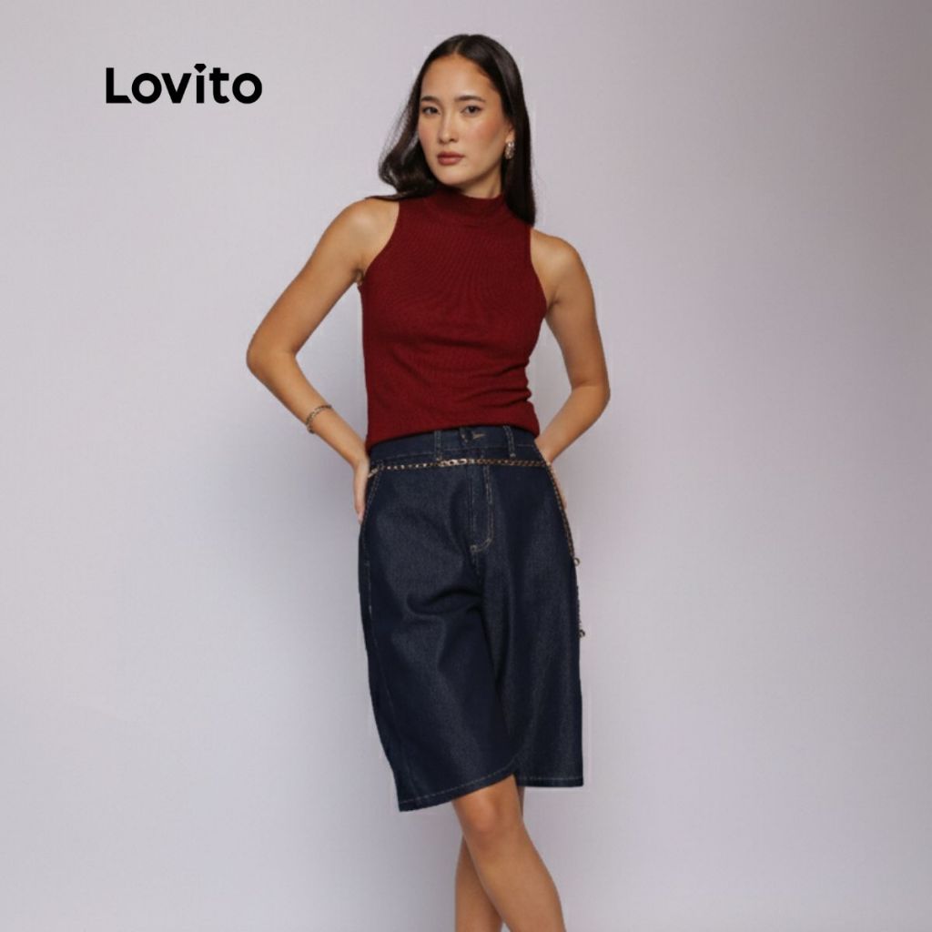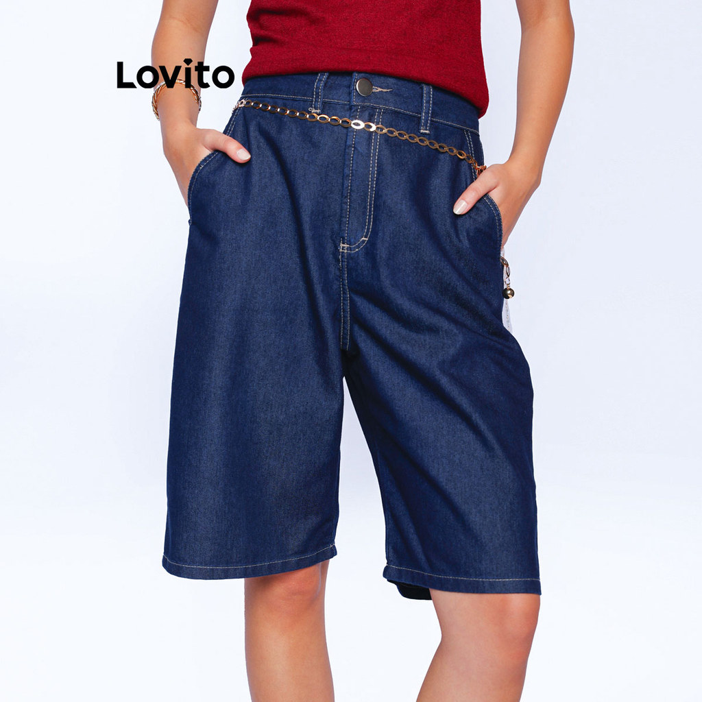 Lovito Bermuda Escura Moda Jeans Com Bolsos Feminina LB1275BRL1305