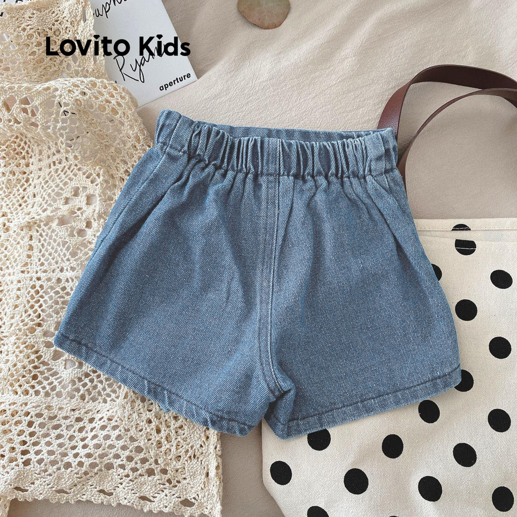 (New) Lovito Kids Conjuntos de Shorts Fofos com Bordado de Ilhós e Bloco de Cores para primavera/verão LNL115047