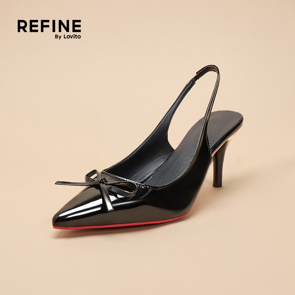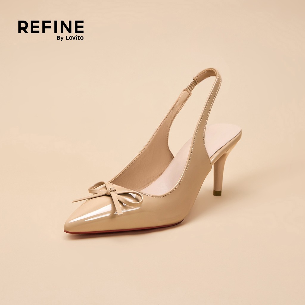 (Refine by Lovito) Elegante laço liso salto alto apontado para trás salto de damasco vazio para mulheres LFAR11408
