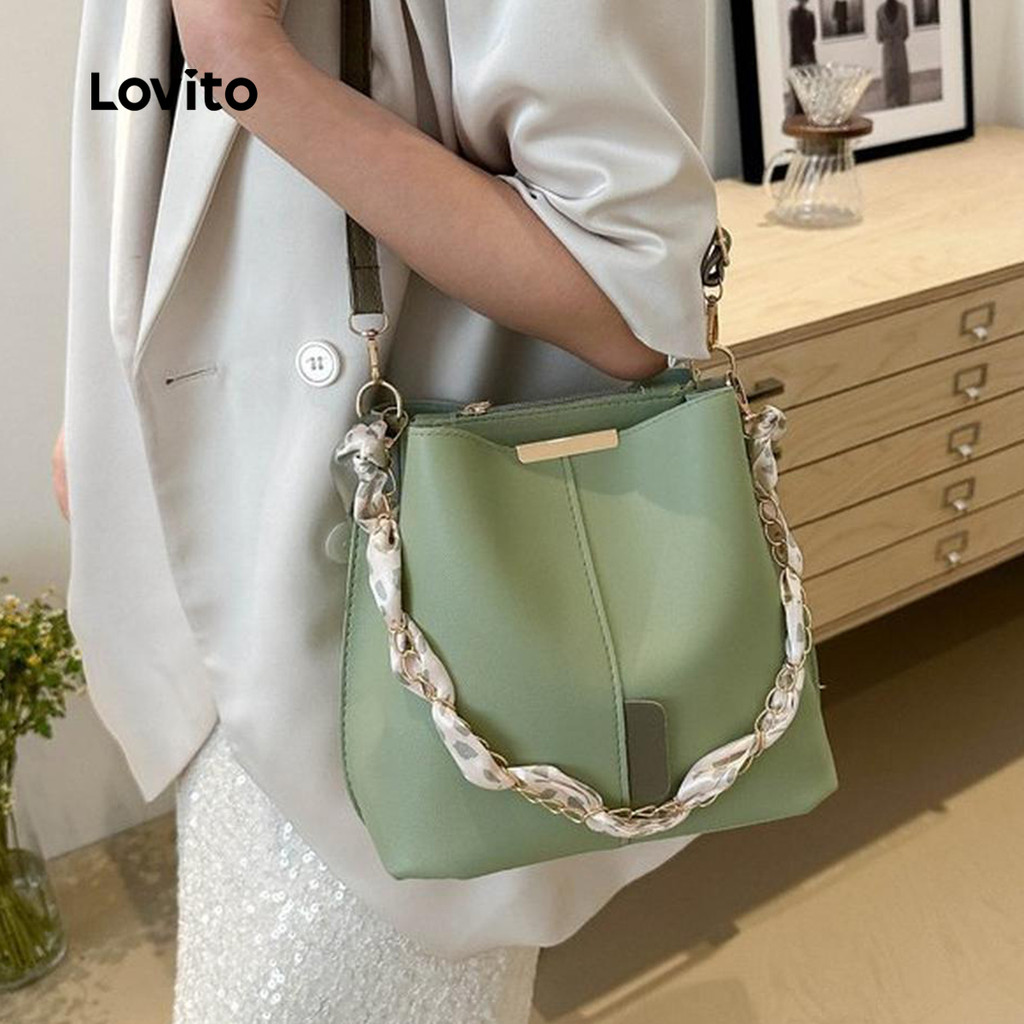 (Trendy) Lovito Bolsa balde simples Casual doce corrente avançada bolsa de ombro pequena para mulheres LFA75143