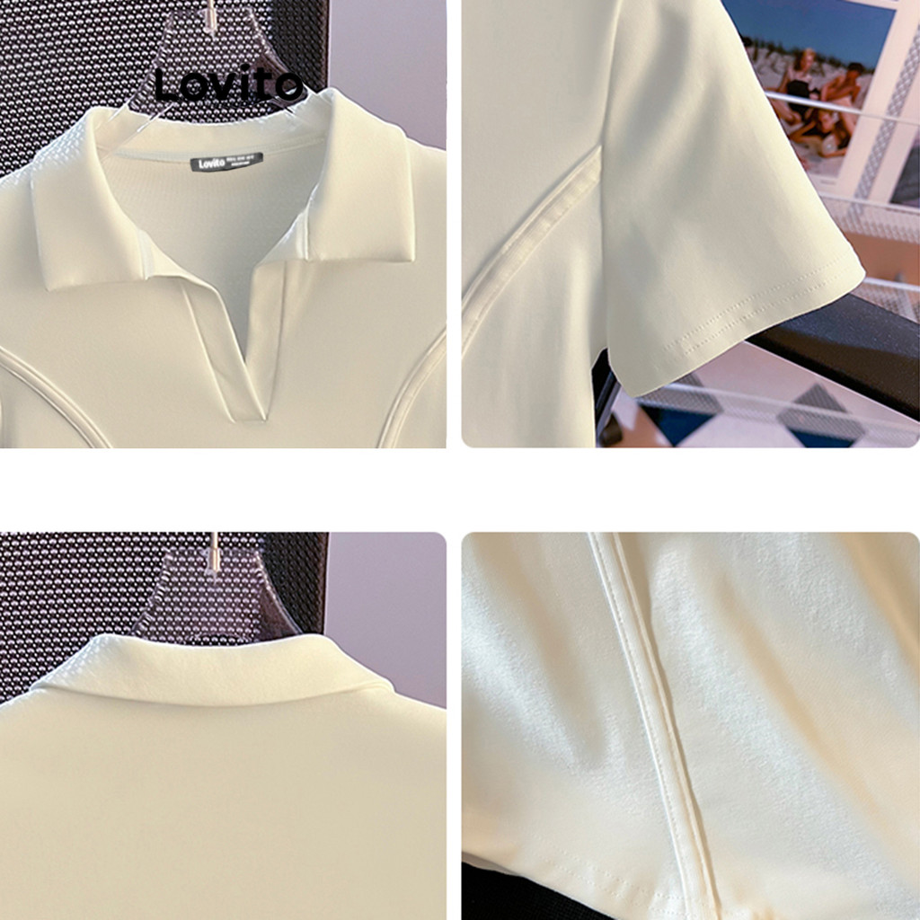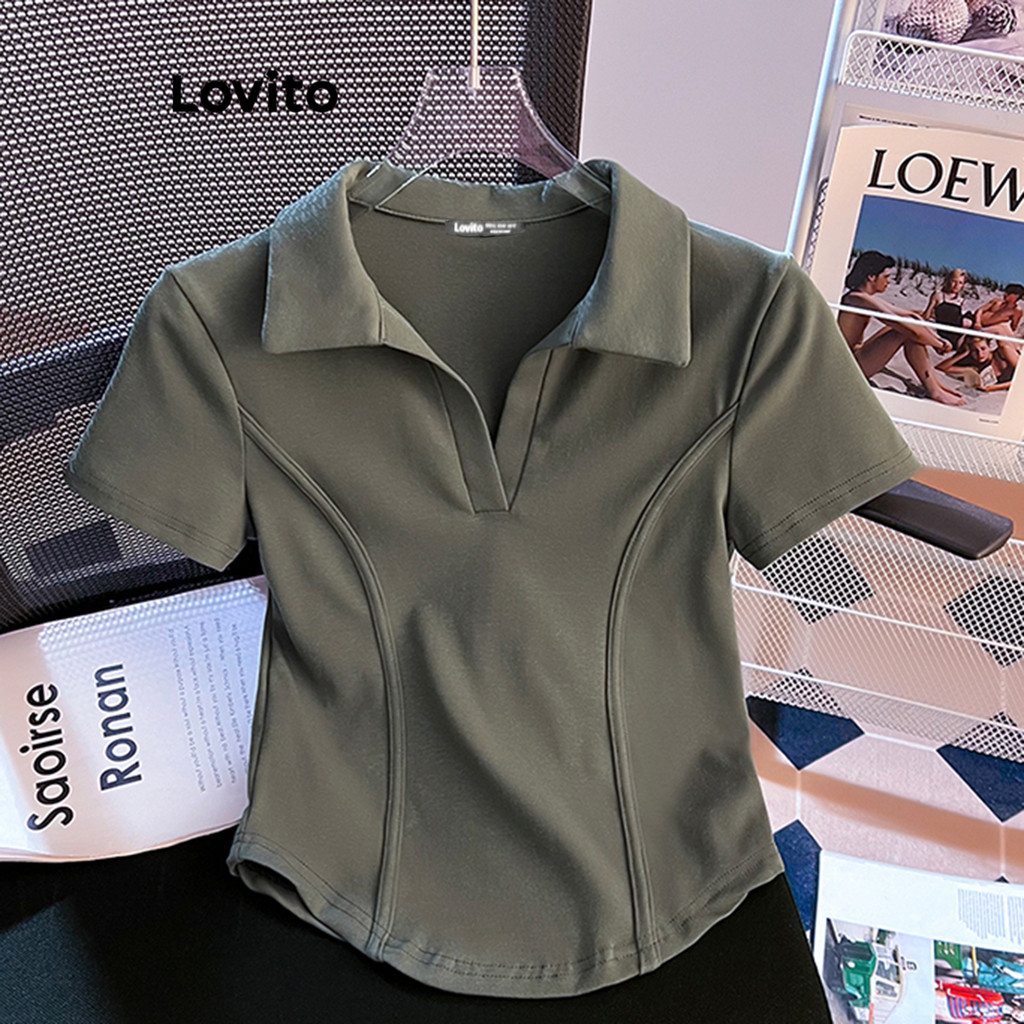 Lovito T-shirt Casual Verão Estrutura Básica Feminina LNM67139