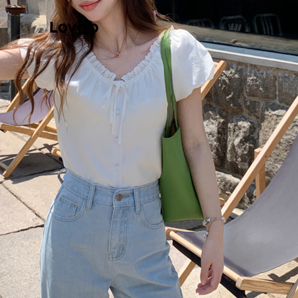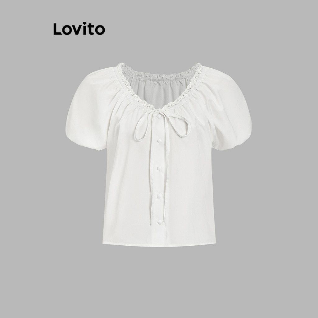 Lovito Blusa Feminina Casual Lisa com Amarração L95EDBL330