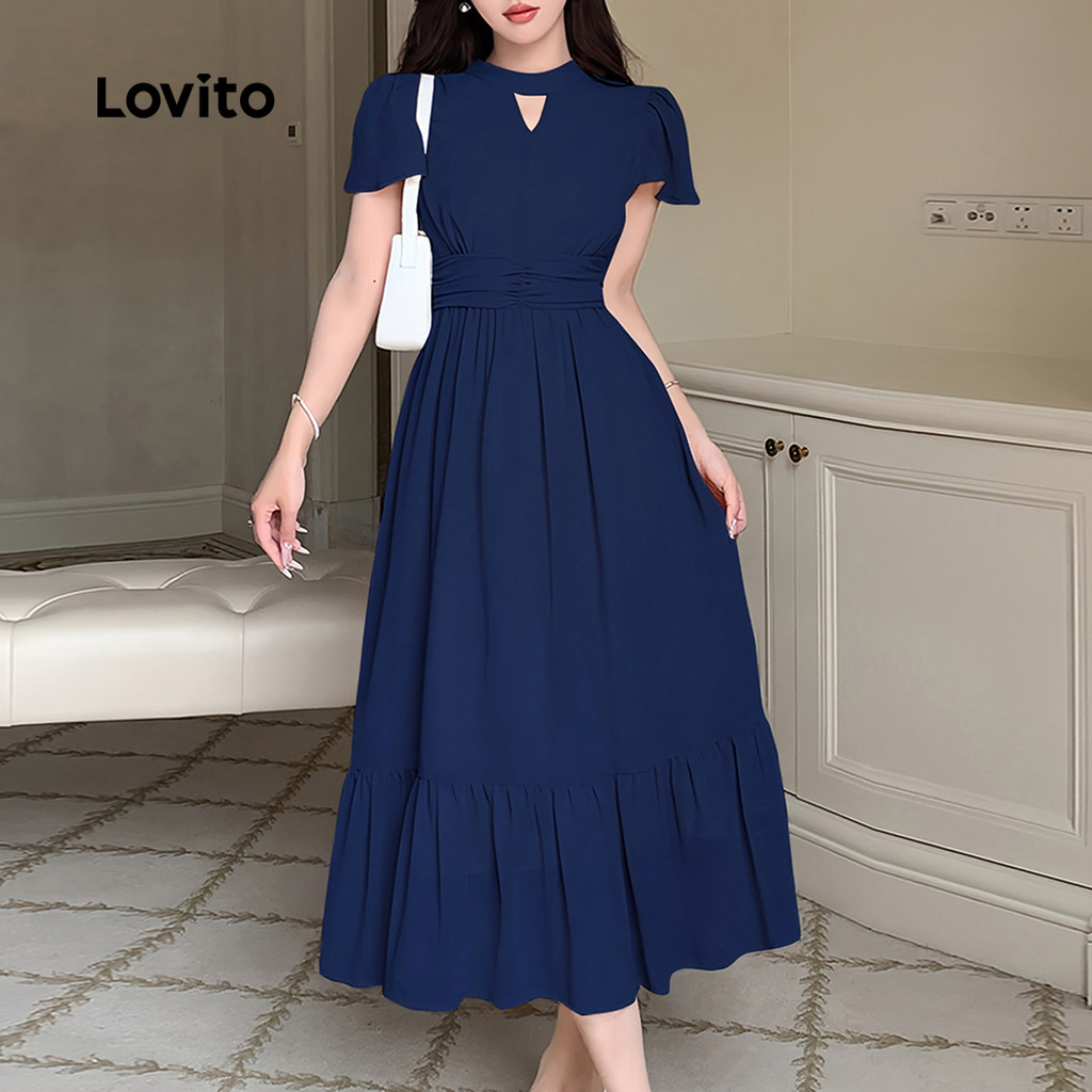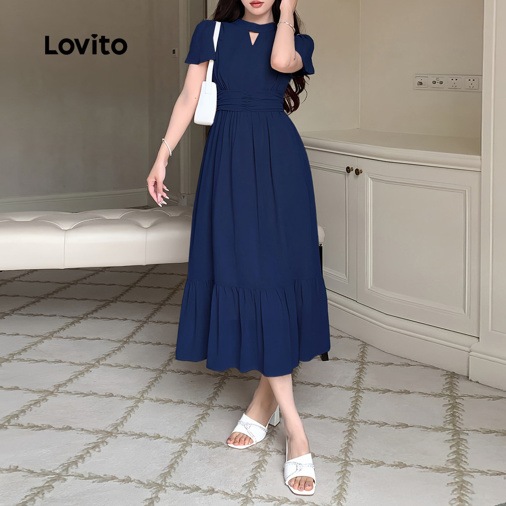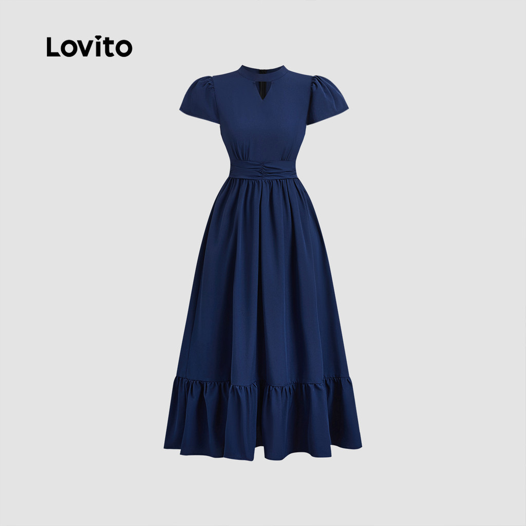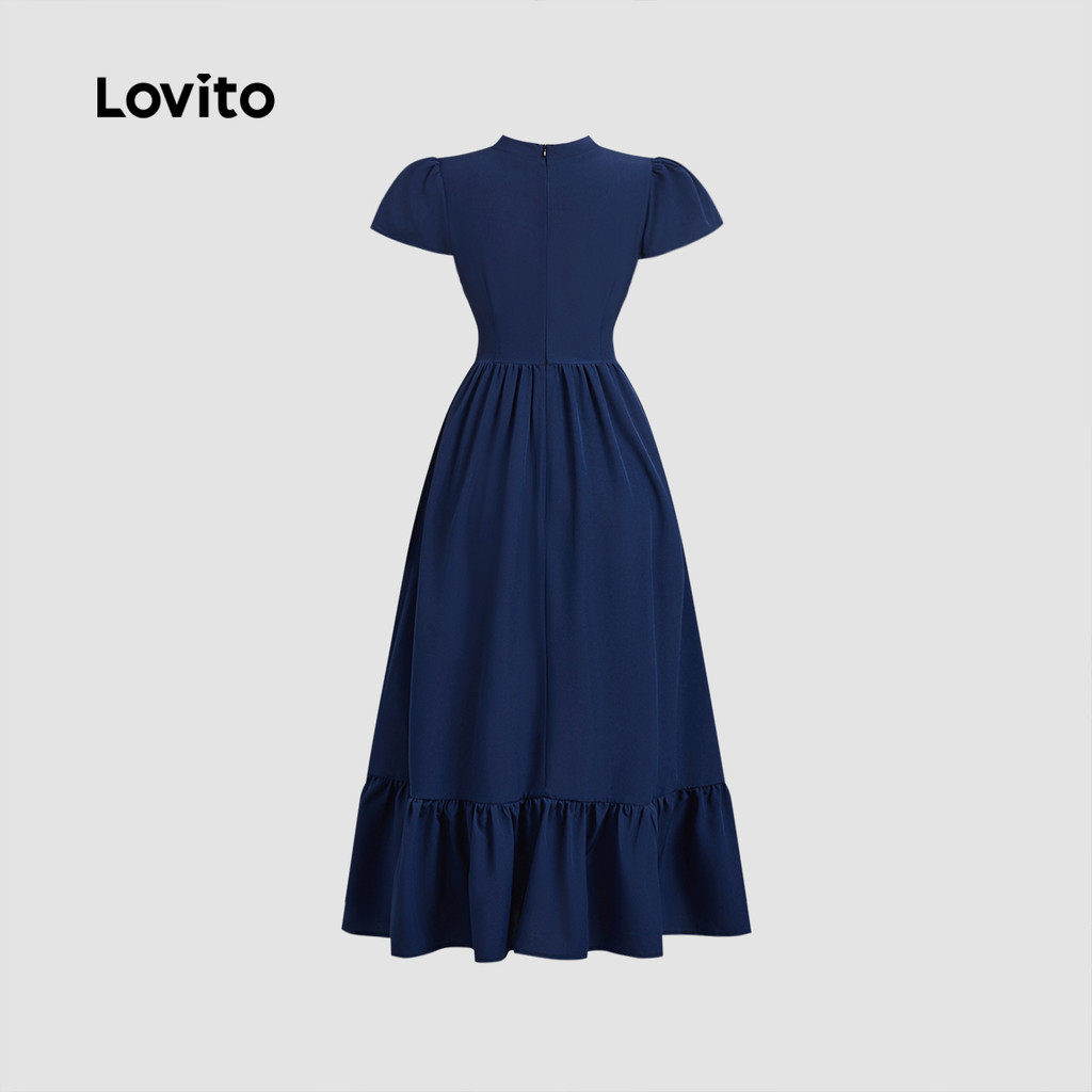 Lovito Vestido Elegante de Estrutura com Pregas e Zíper Primavera/verão Vestido Azul Escuro L138ED337