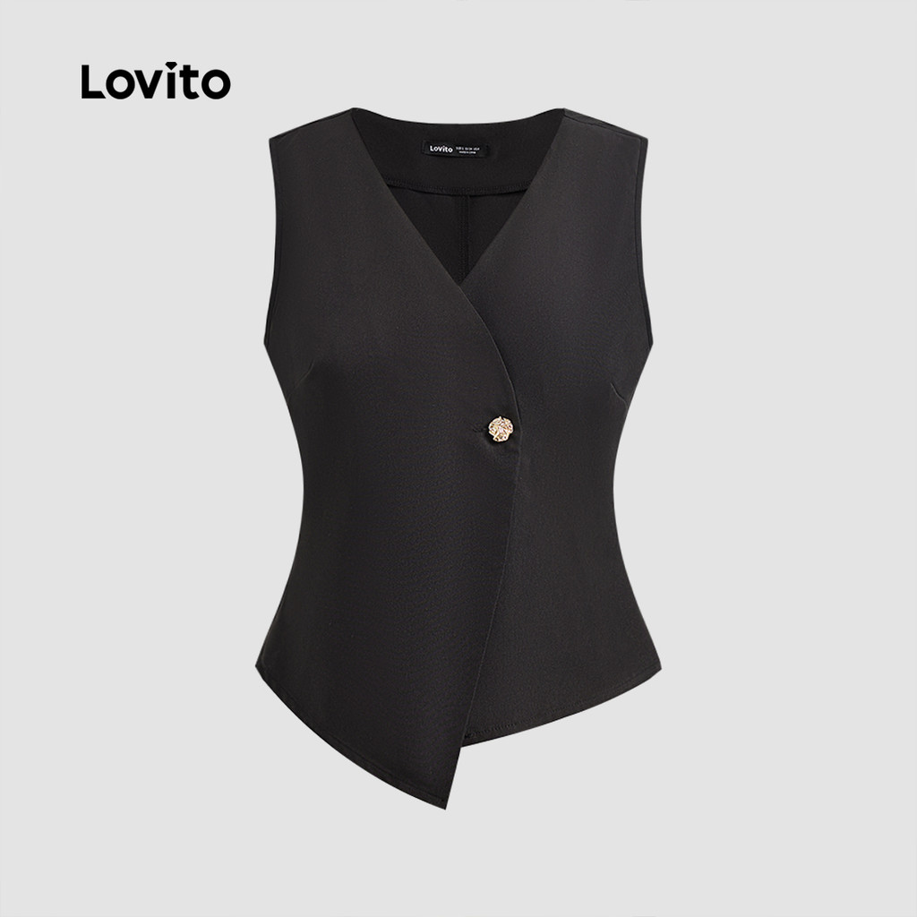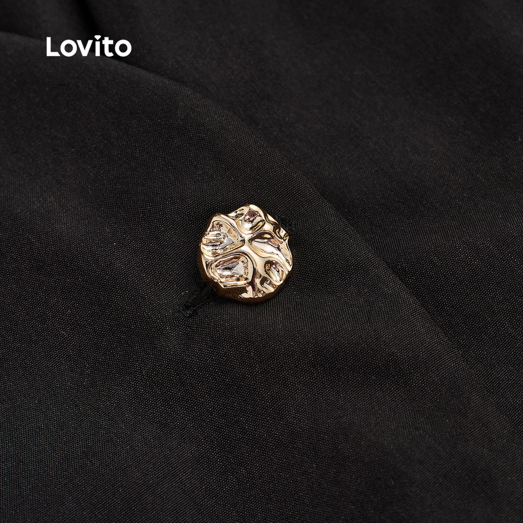 Lovito Blusa Elegante de Botões Superiores de Primavera/verão Preta para mulher L143EDD337