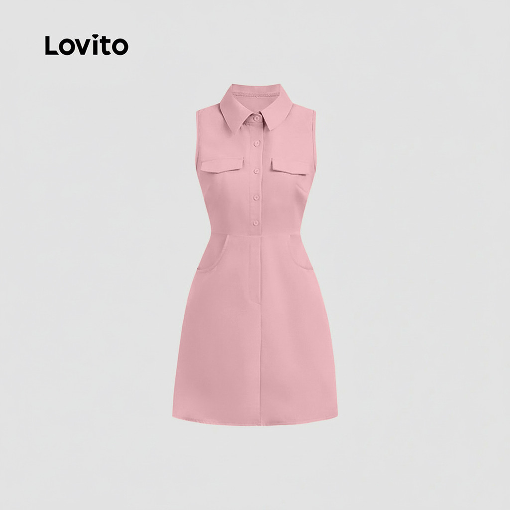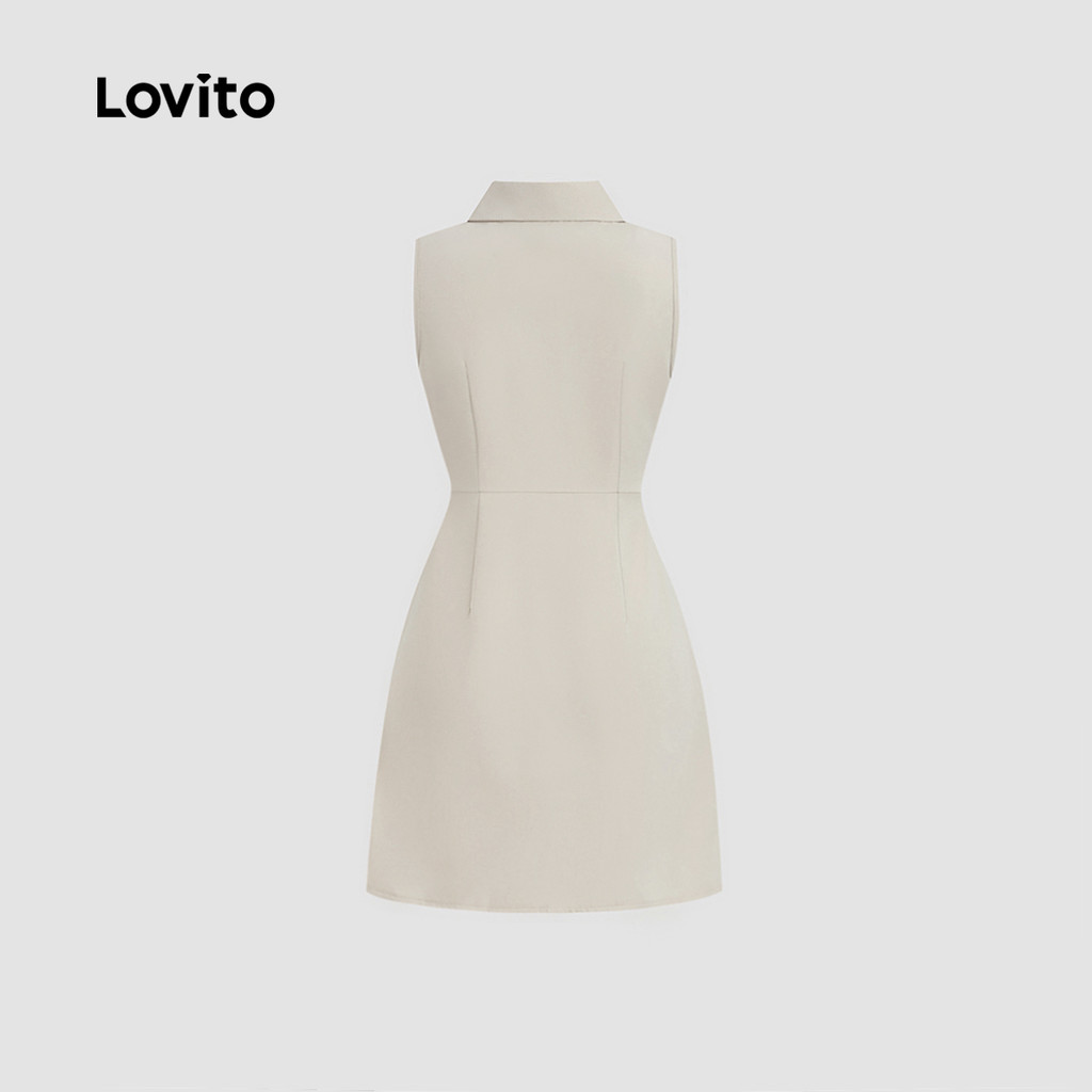 Lovito Vestido Casual de Bolso com Botão para Primavera/verão em Khaki Claro para mulheres L155ED942
