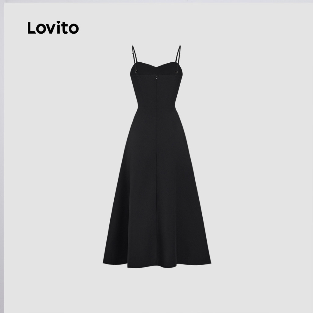 Lovito Vestido Glamouroso de Estrutura Linha Dividida Assimétrica Primavera/verão Preto L155AD279