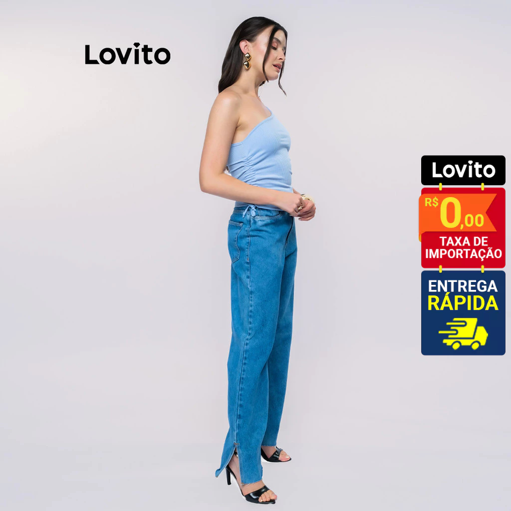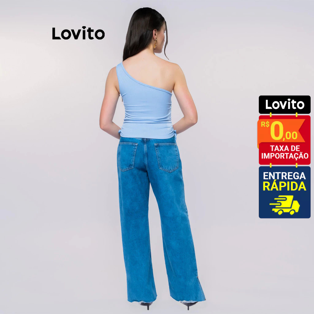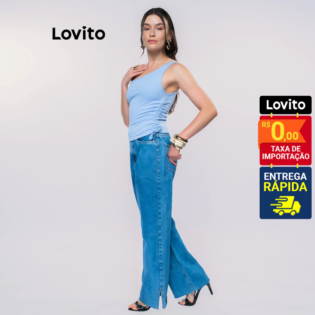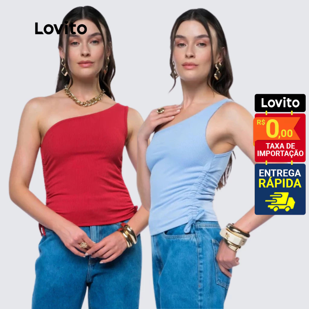 Lovito Kit 2 Regatas Um Ombro Só Feminina Franzido Lateral LB1320BRL1350