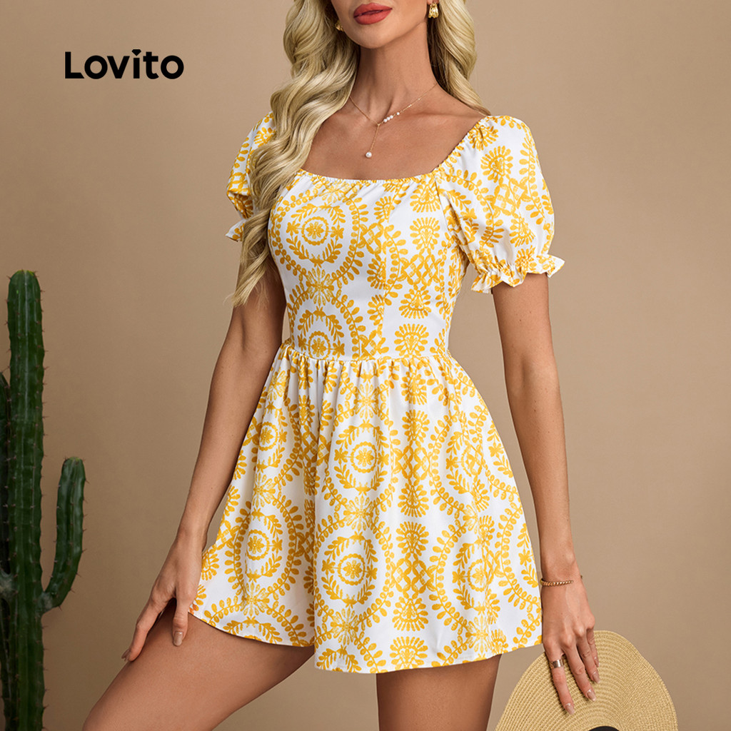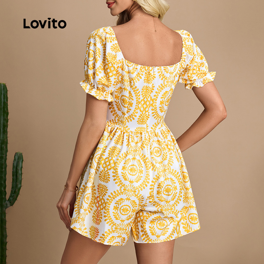 Lovito Macacão Boho com Zíper Primavera/verão Macacão Amarelo para mulheres LBL30264