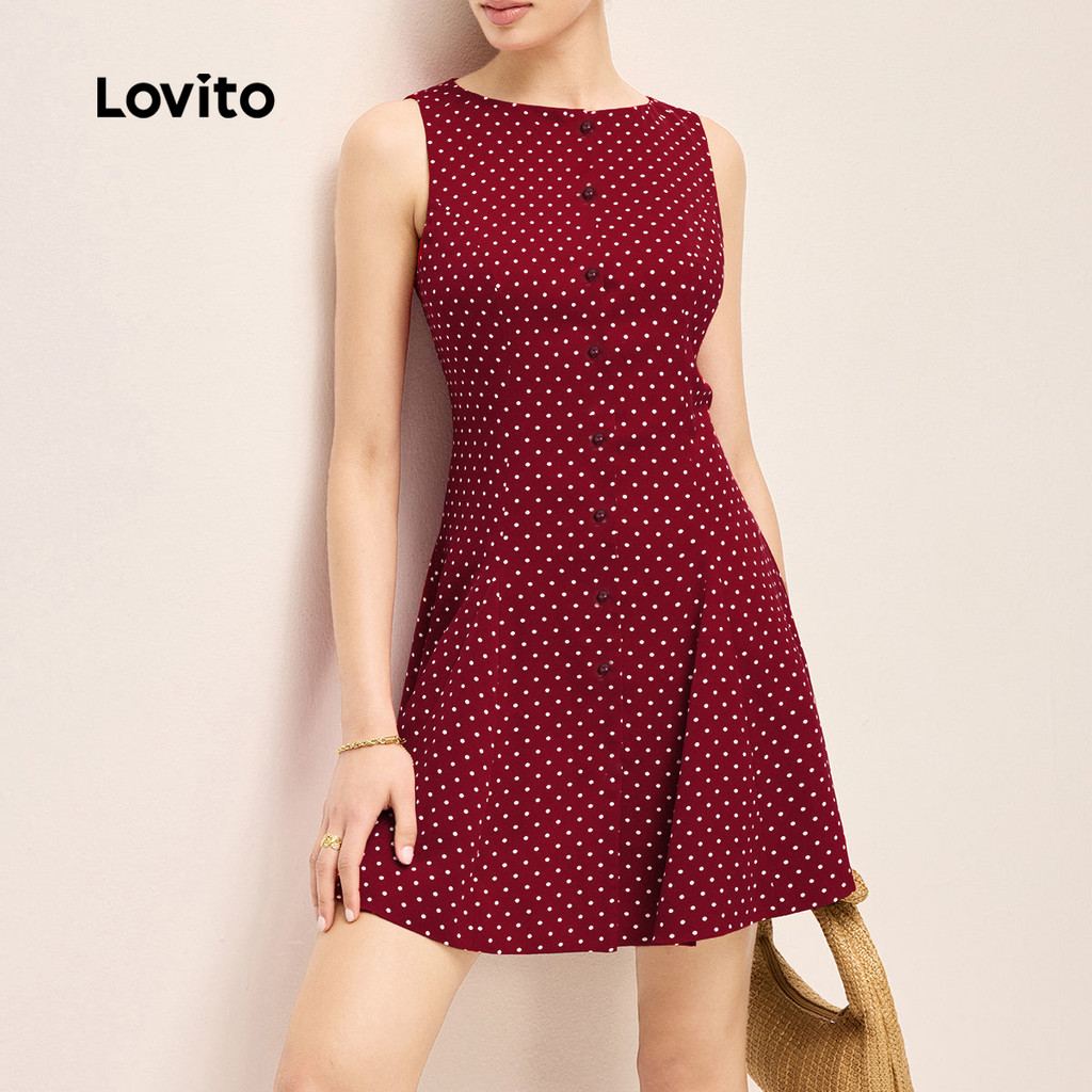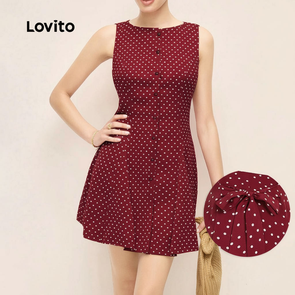 Lovito Refine Vestido Feminino Casual com Botões e Amarração Traseira para Primavera/Verão L155ED884