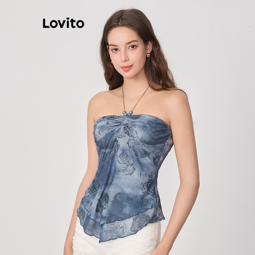 Lovito Regata Boho Feminina com Estampa Paisley e Camada Dupla com Contas L83ED011