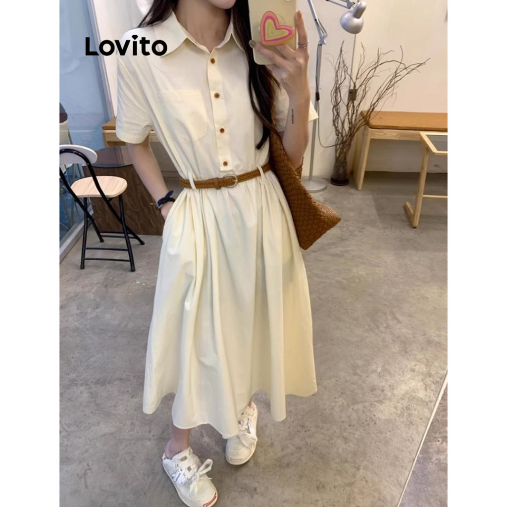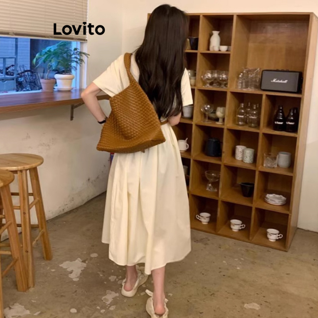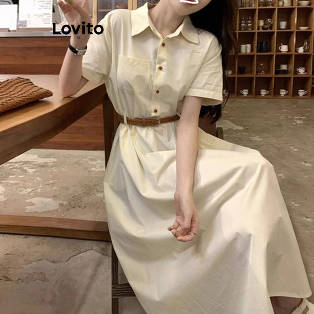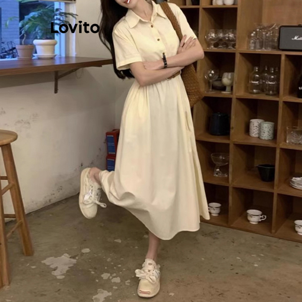 Lovito Vestido Elegante Vestido Liso Com Botões Para Mulheres LNE70163\2