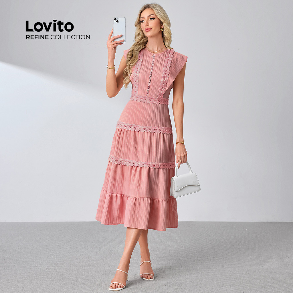 Lovito Refine Vestido Feminino com Babados Exagerados para Primavera e Verão LR23L074