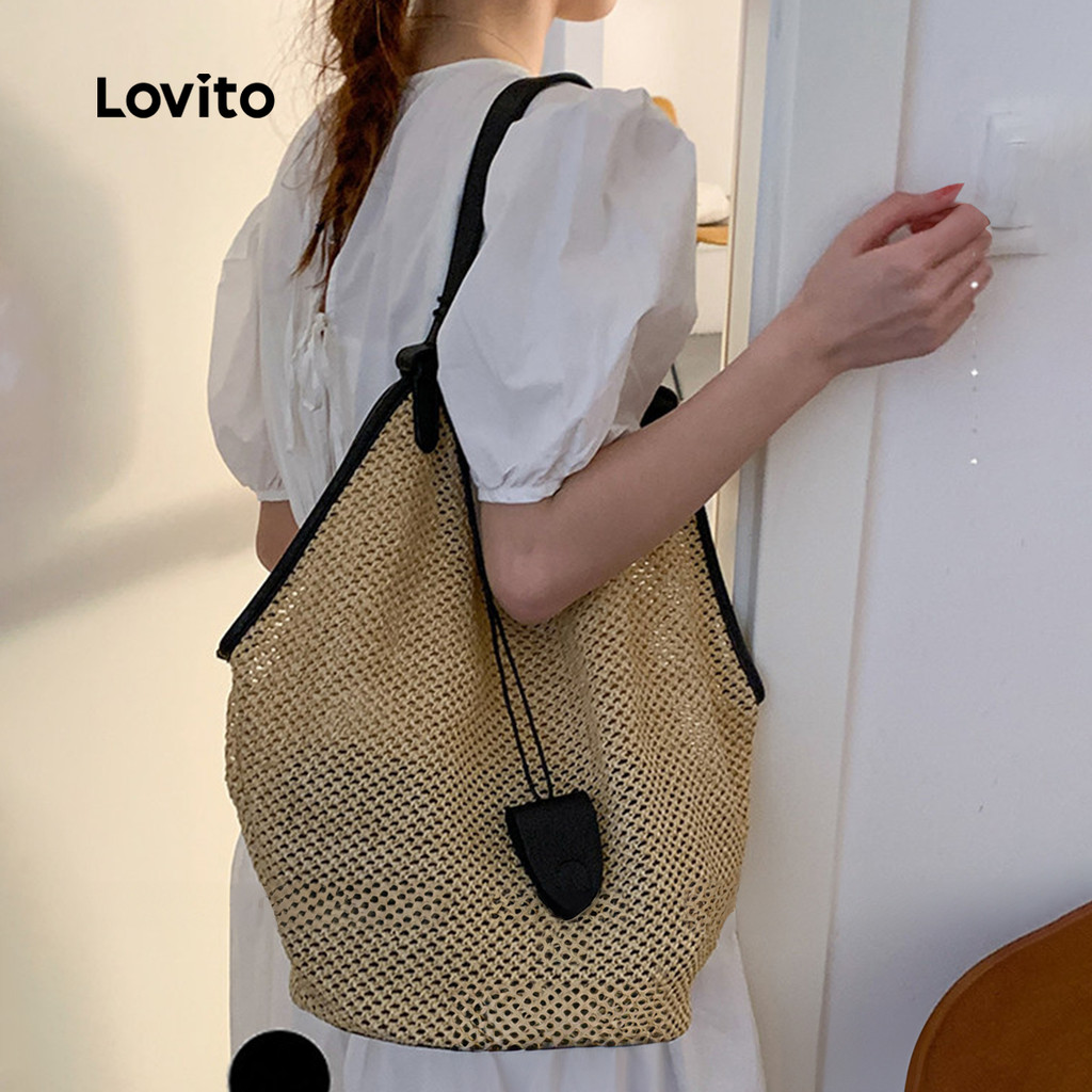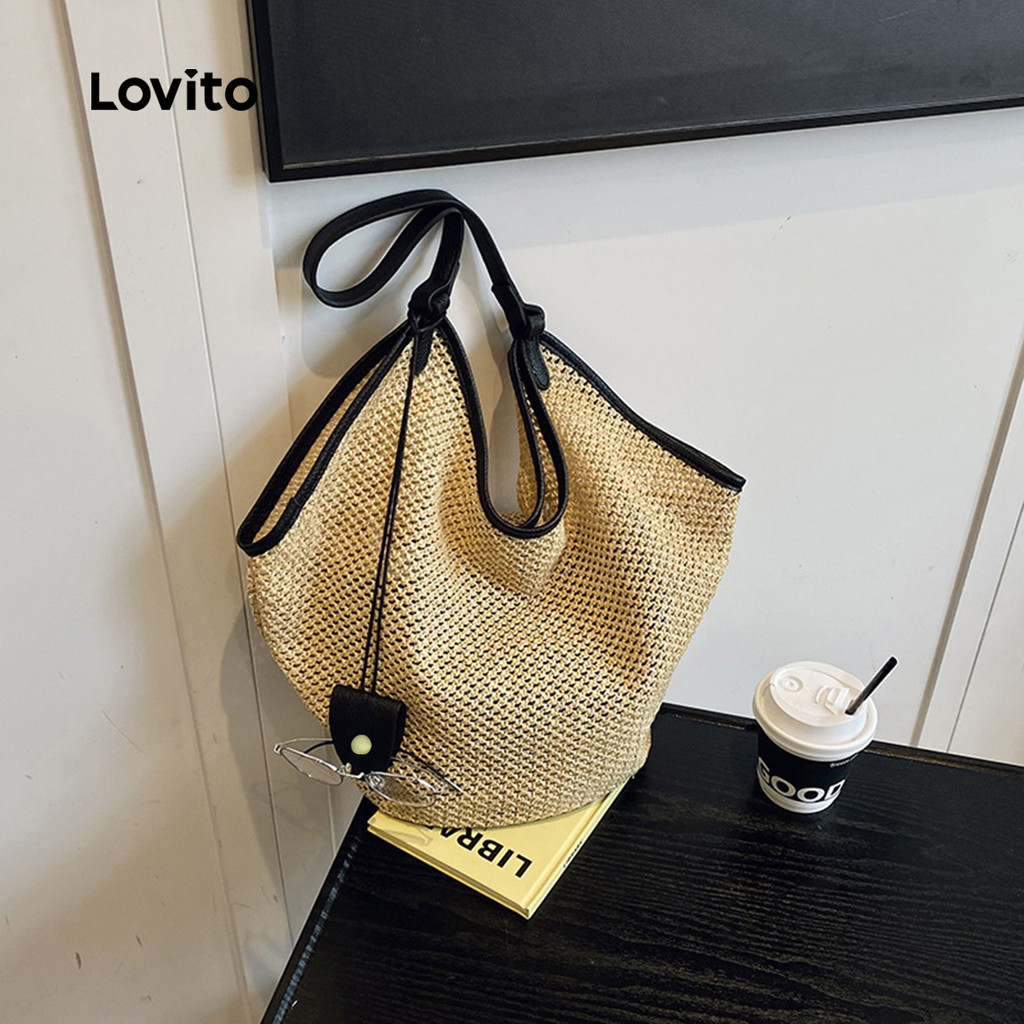 Lovito Bolsa Tote Casual de Viagem Borda Contraste Transversal Feminina LFA110093
