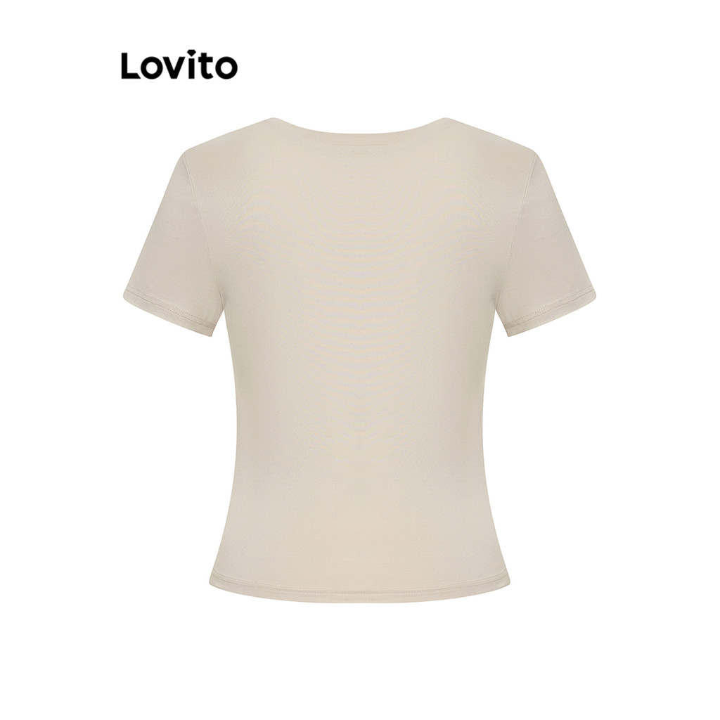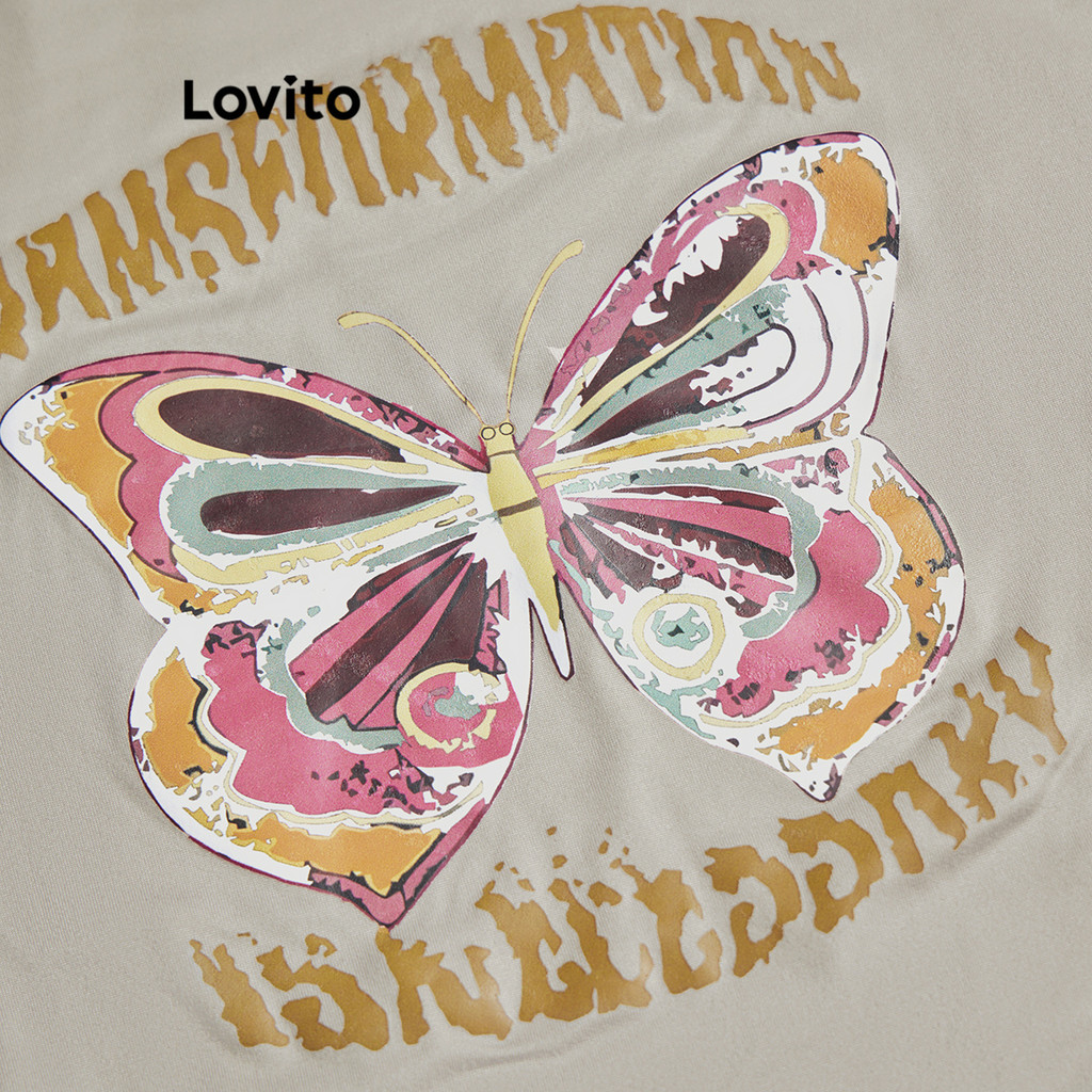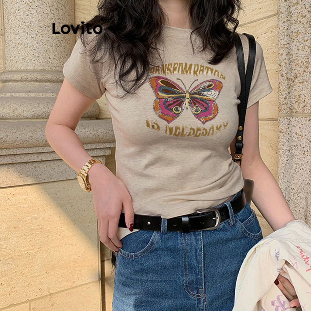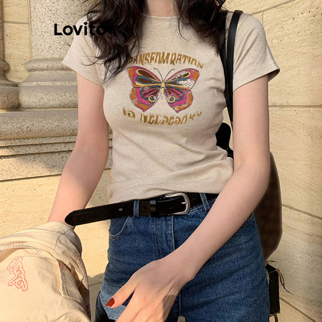 Lovito Camiseta Feminina Casual com Desenho Básica L104ED673