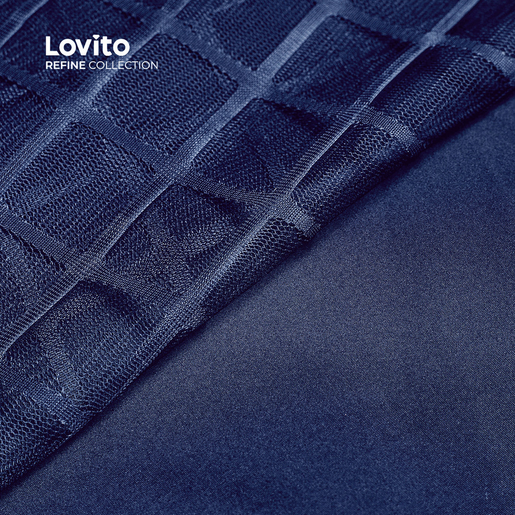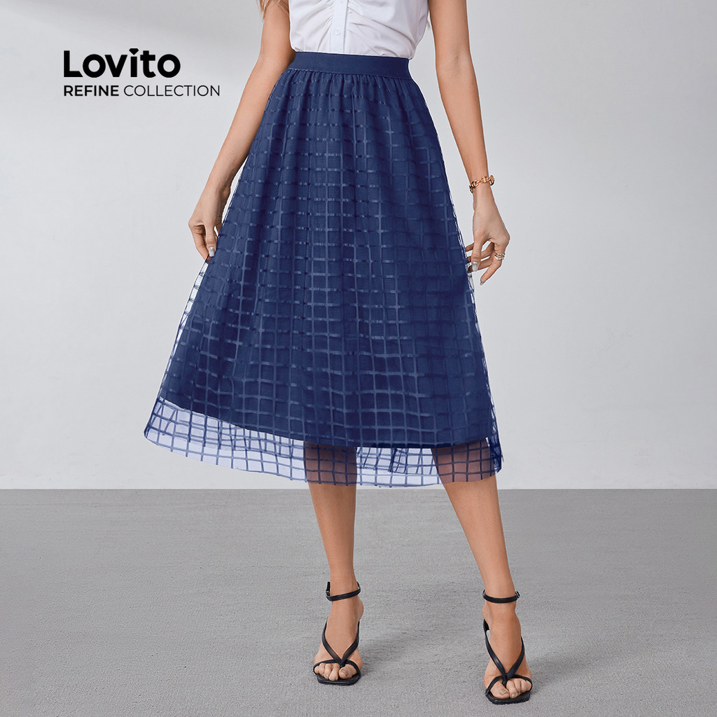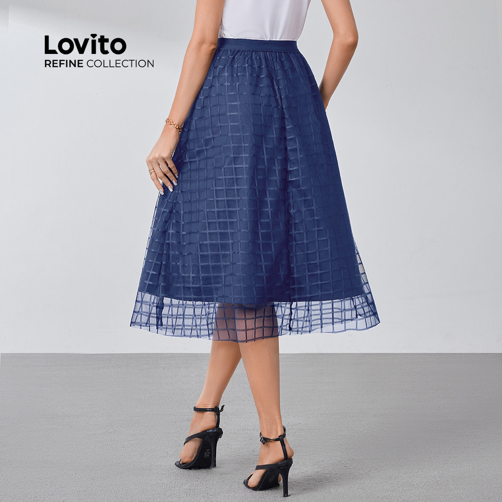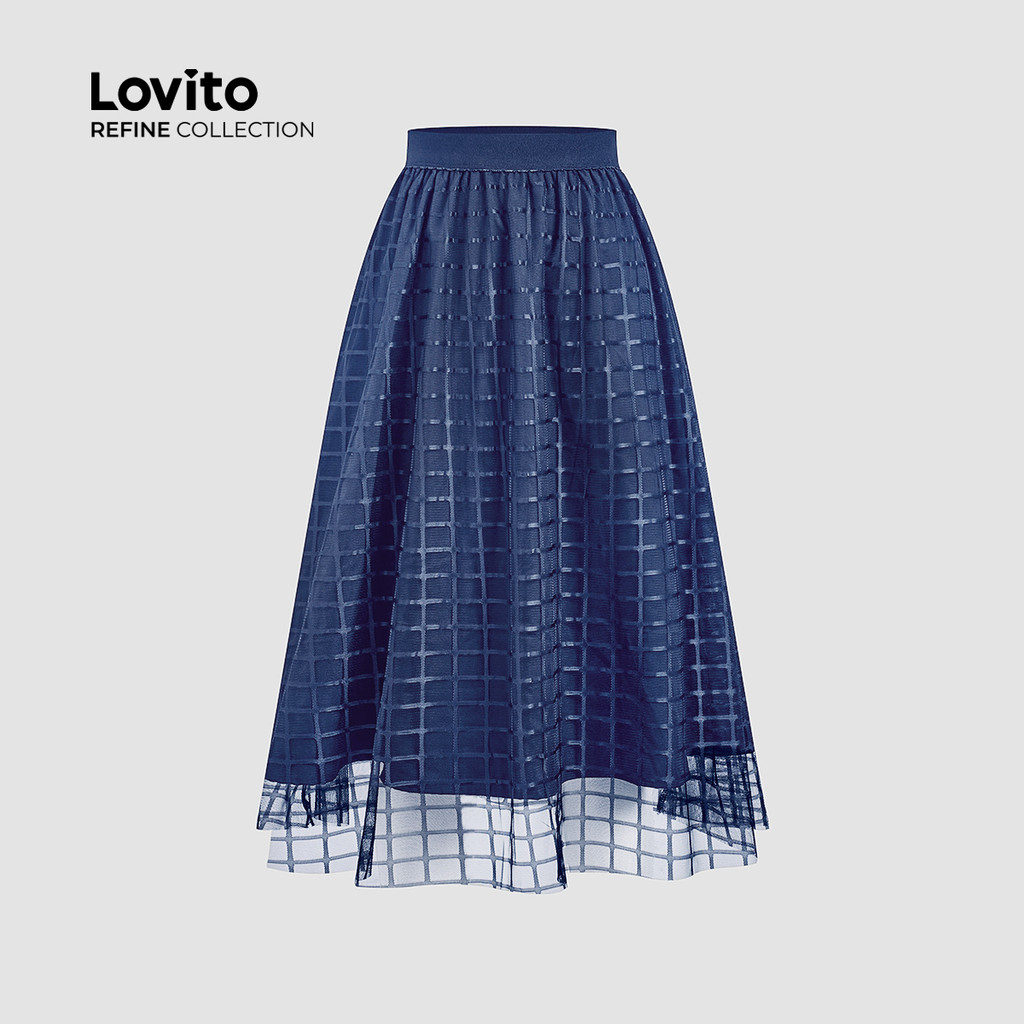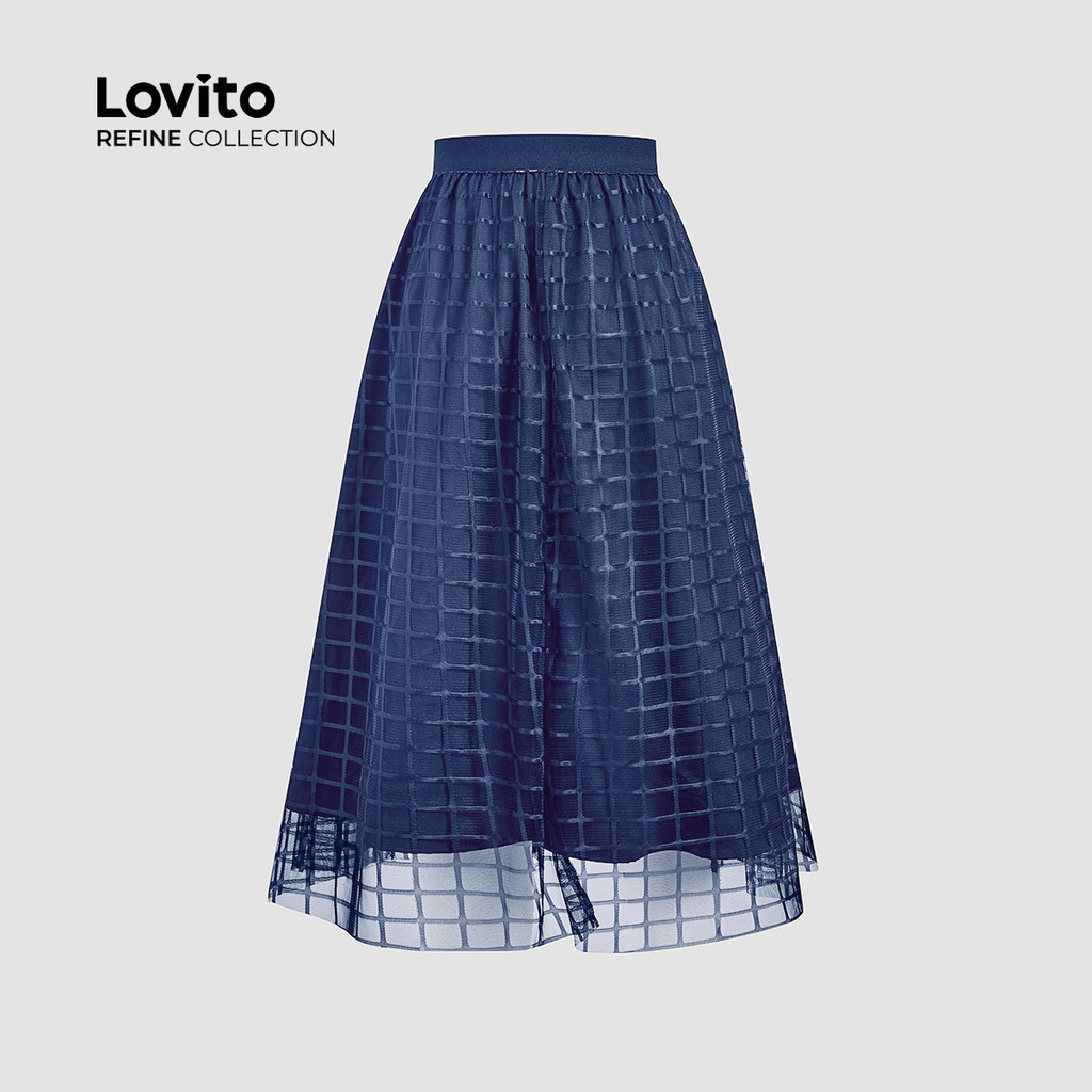 (Lovito Refine) Saias Elegantes Contraste Malha Primavera/verão Saias Azul Marinho para Mulheres LR26L068